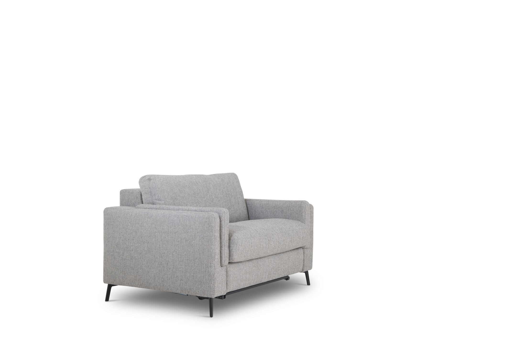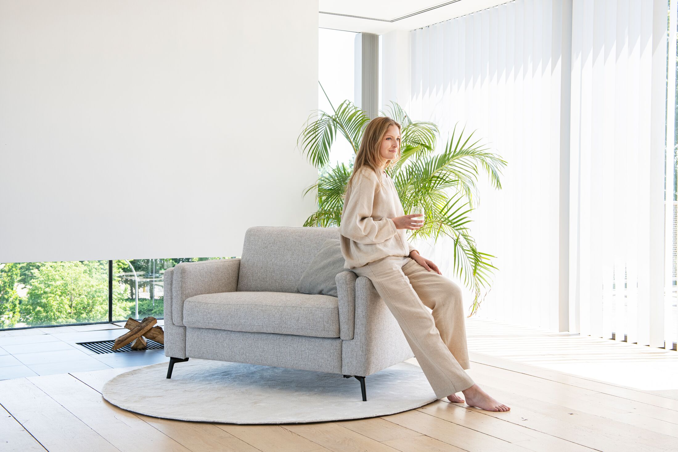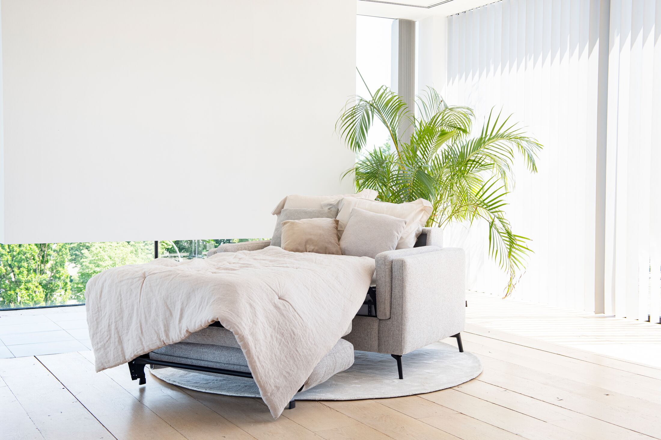 Damien est le nouveau venu dans la gamme Sofabed. Ce canapé-lit moderne semble aéré et frais grâce à ses hauts pieds en métal noir et à son accoudoir original. Damien est disponible en tant que siège simple ou double et peut être combiné avec une chaise longue ou un pouf.