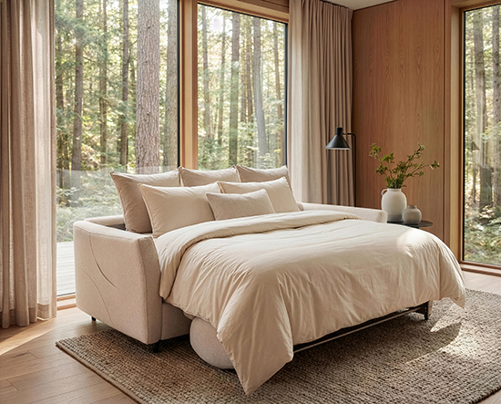 Le canapé-lit Verso de ROM allie un design épuré à un confort de couchage exceptionnel. Élégant canapé le jour, il se transforme facilement en lit à part entière la nuit. Le Verso est disponible avec un matelas de 140 ou 160 cm de large. Grâce à son matelas confortable de 17 cm d'épaisseur, vous bénéficiez d'un soutien optimal. Sa finition haut de gamme et son look intemporel s'intègrent dans tous les intérieurs. Idéal pour ceux qui ne veulent pas faire de compromis entre style et fonctionnalité.