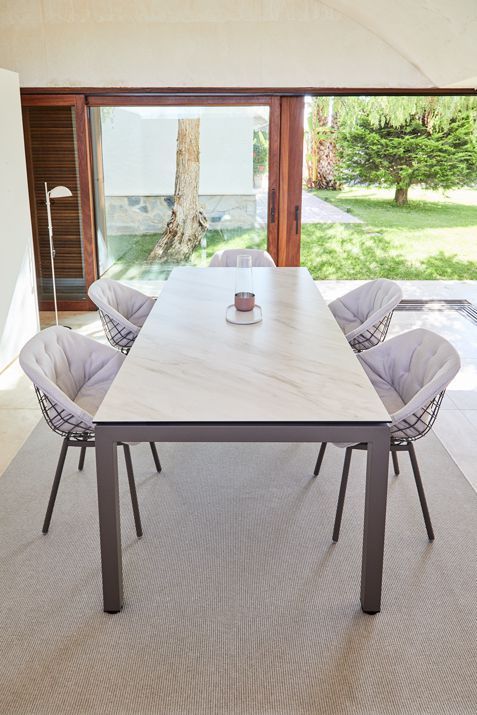 Le plateau en céramique stratifié sur verre de sécurité se distingue par ses propriétés de résistance aux rayures et à la chaleur. En effet, la céramique est naturellement résistante et ne peut donc pas être rayée. Avec la table Salvia, les dessous de verre ne sont donc plus nécessaires.