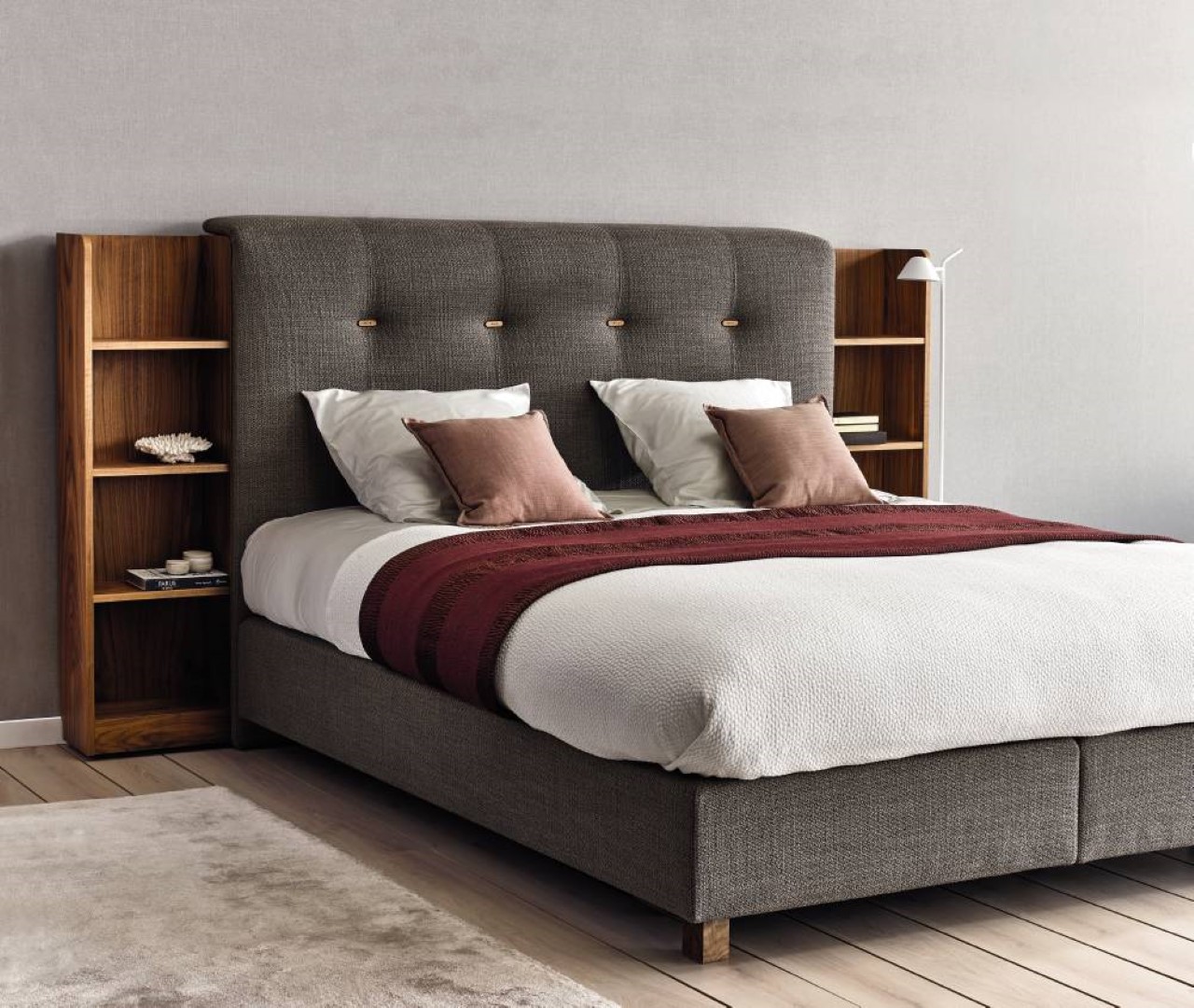 Le cadre de lit rembourré Lattoflex confère à un système de sommeil Lattoflex une apparence simple et en même temps extrêmement sophistiquée. Disponible avec ou sans tête de lit et dans différentes qualités de tissu et nuances de couleurs, dormir devient un pur plaisir.