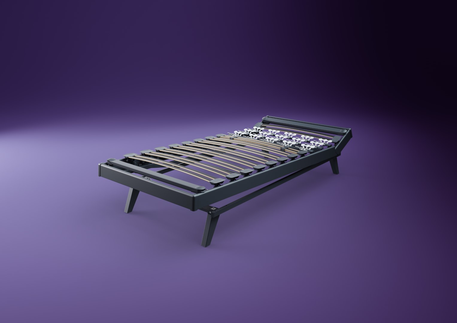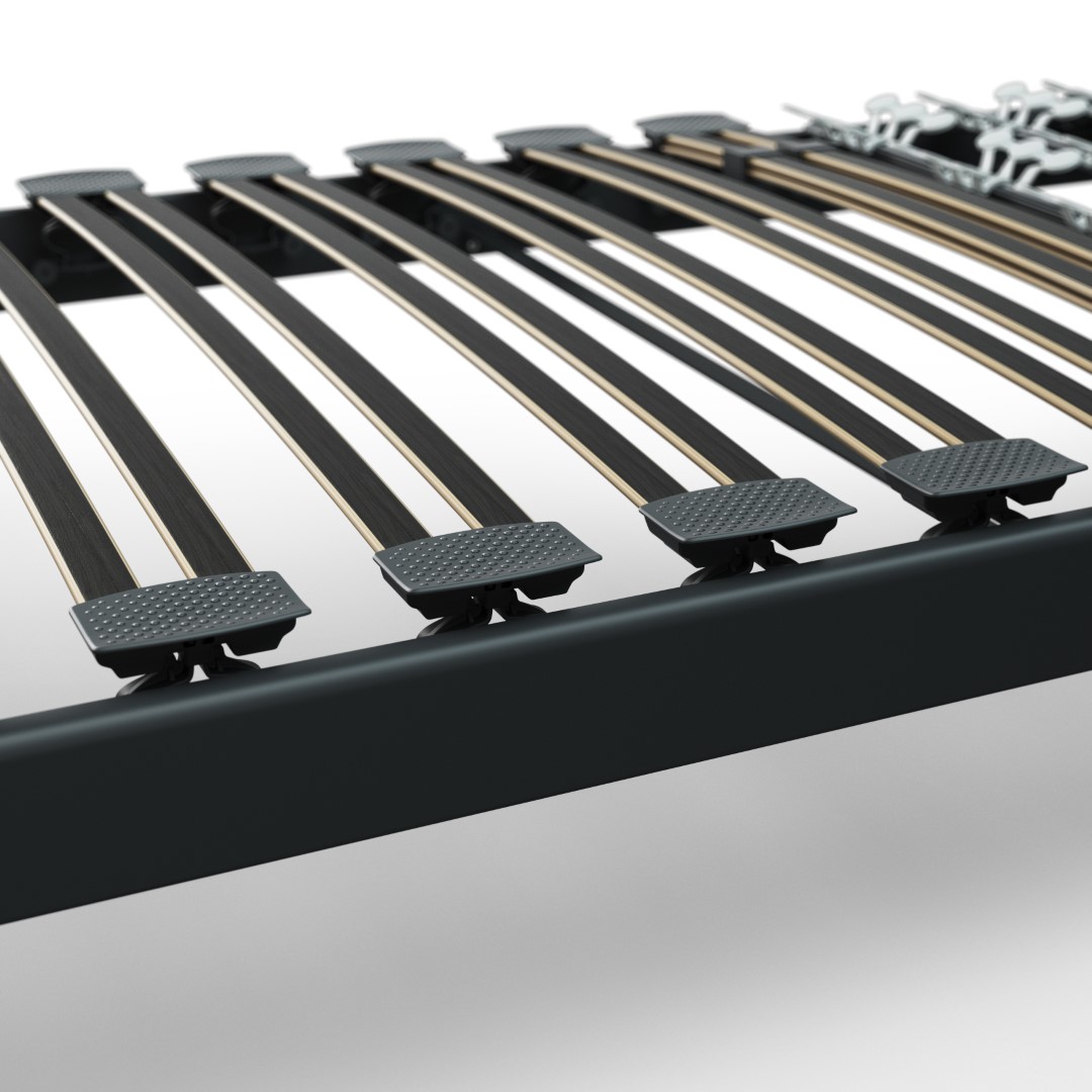Avec le sommier Hybrid 1, Lattoflex combine la technologie classique du sommier à lattes avec les avantages du sommeil sur des ailettes flexibles.