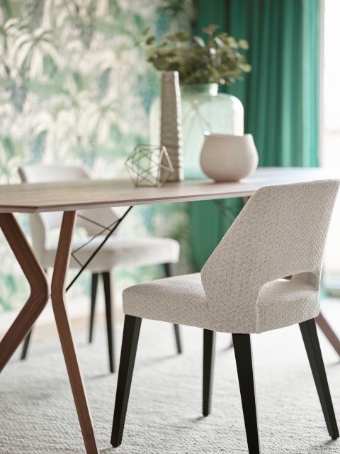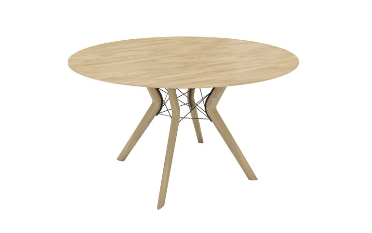 Courbes assurées et lignes arrondies. Une base en bois et en métal aux lignes déstructurées et donc parfaitement adaptée à des chaises confortables.