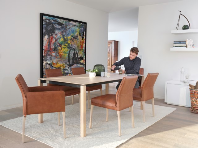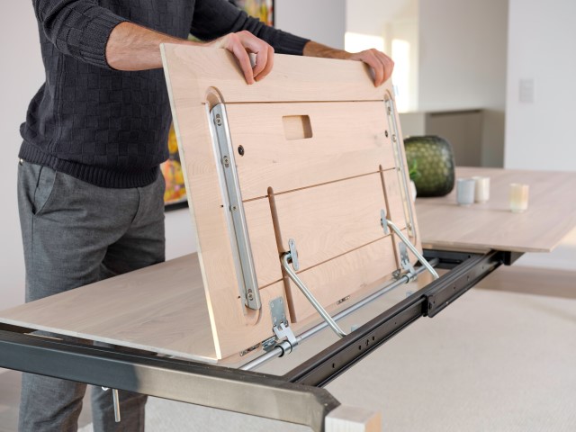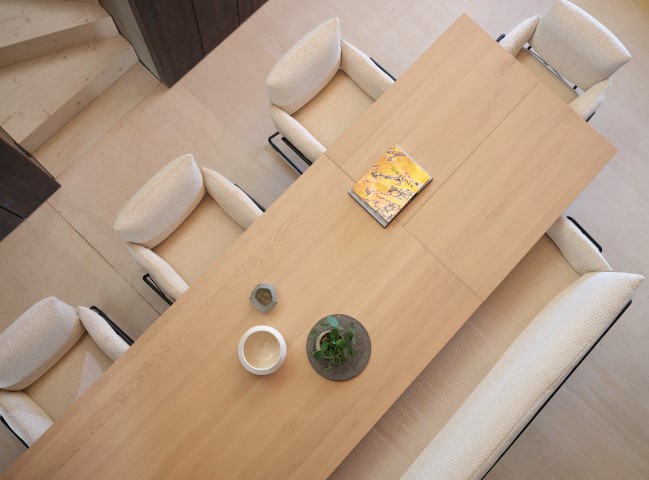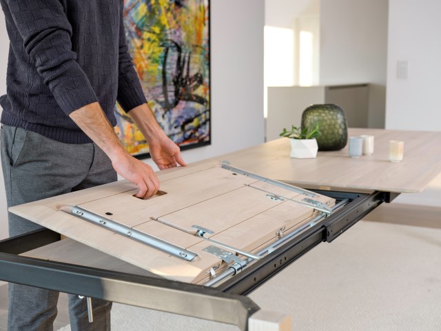 Dotée d'une rallonge intégrée en bois massif, cette table répond à vos souhaits en quelques instants. Vous pouvez créer un mètre d'espace supplémentaire en un rien de temps !