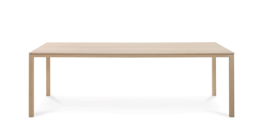 Les pieds sont très raffinés et sur les longs côtés, on a l'impression que le plateau n'est pas soutenu. Grâce à sa construction métallique astucieuse, cette table peut atteindre une longueur de 3 mètres sans support supplémentaire.