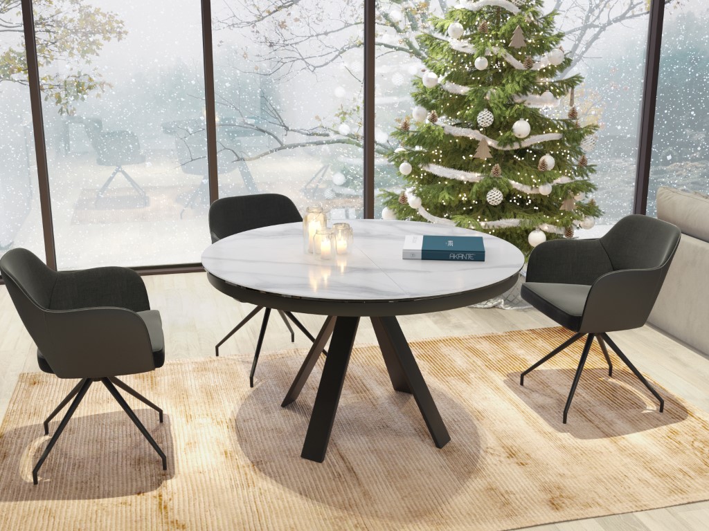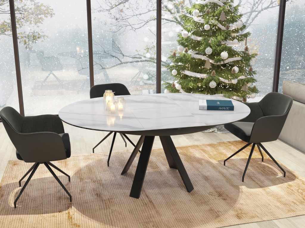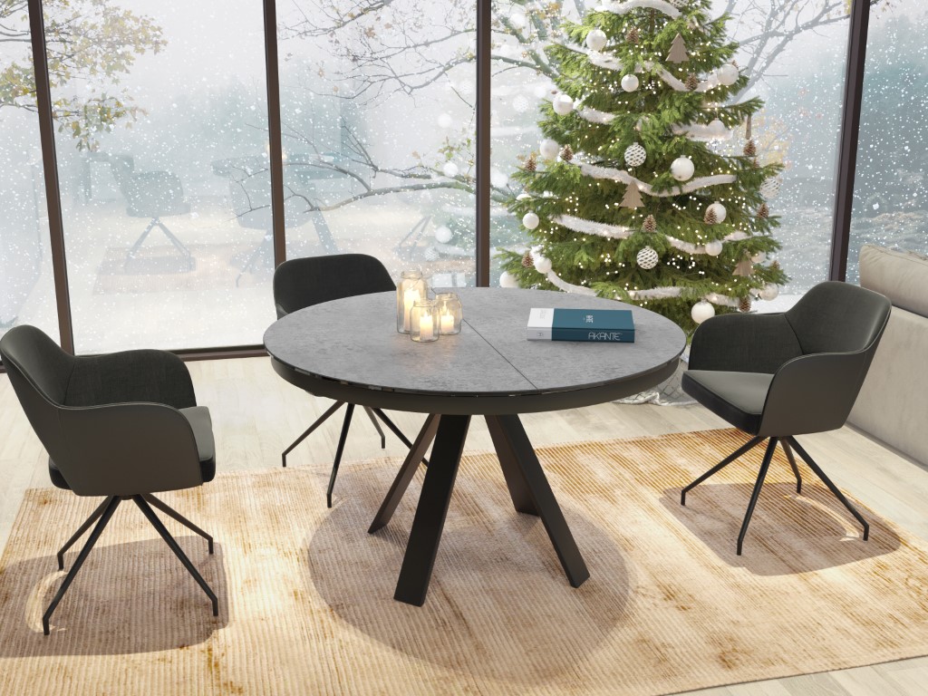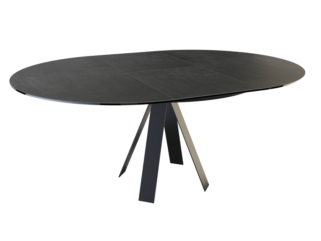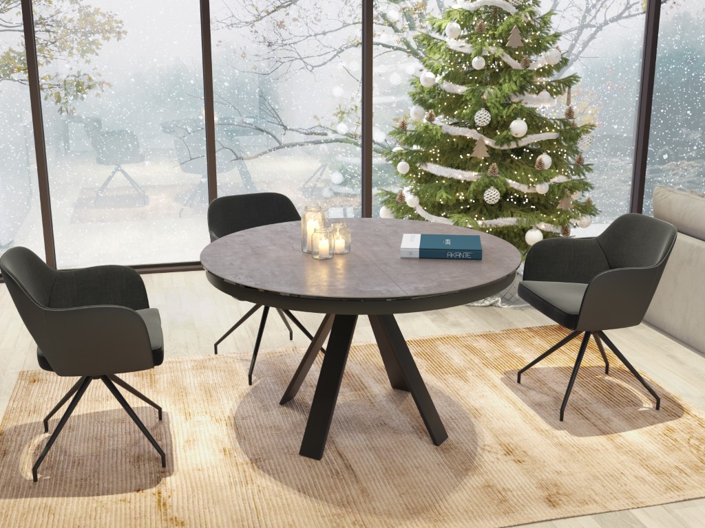 Chic, élégant et pourtant tendance grâce à ses matériaux bruts et son design Akante. La table ronde peut être facilement élargie grâce à l'extension papillon. La base en acier laqué noir mat confère à cette table un caractère noble et raffiné.