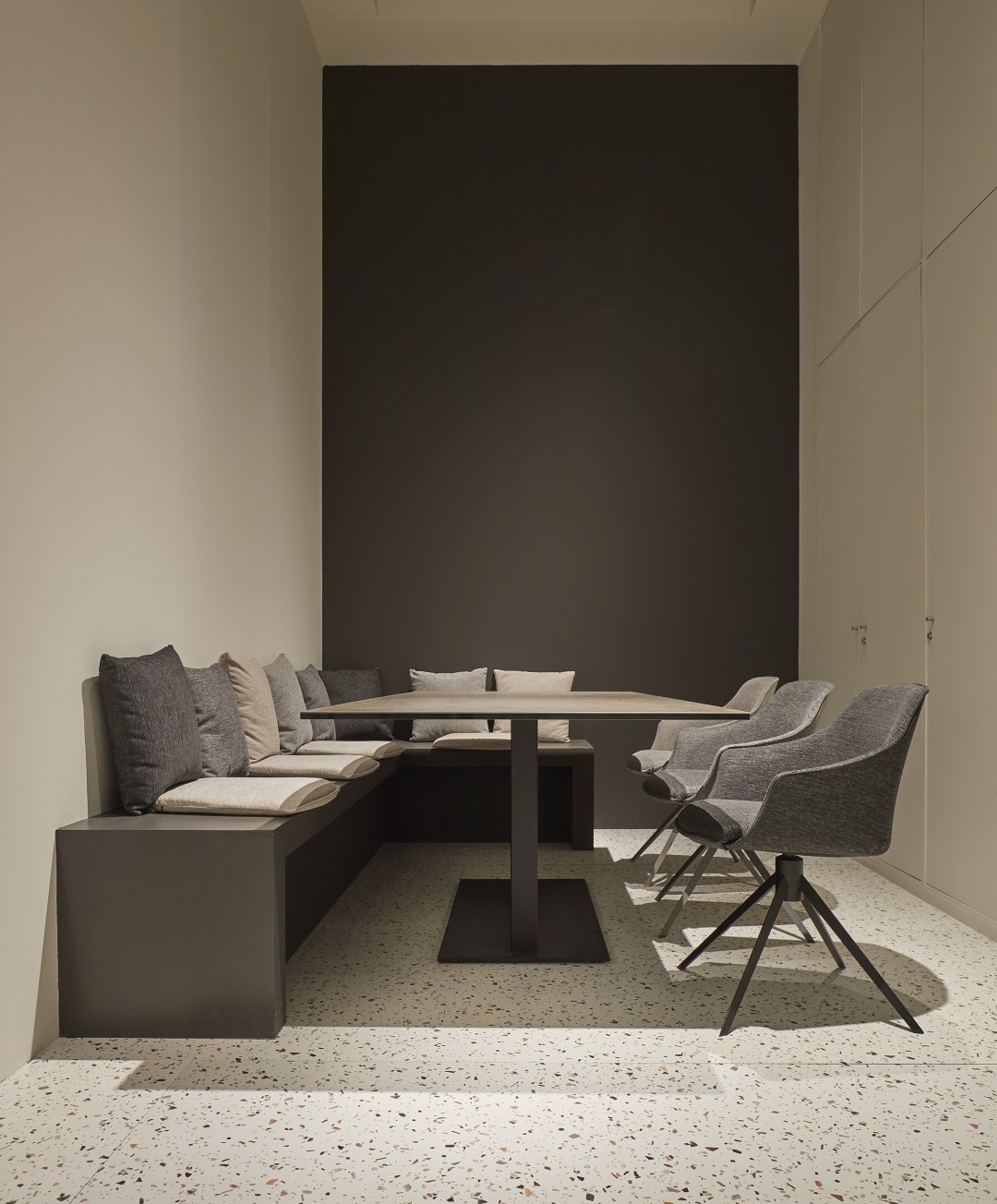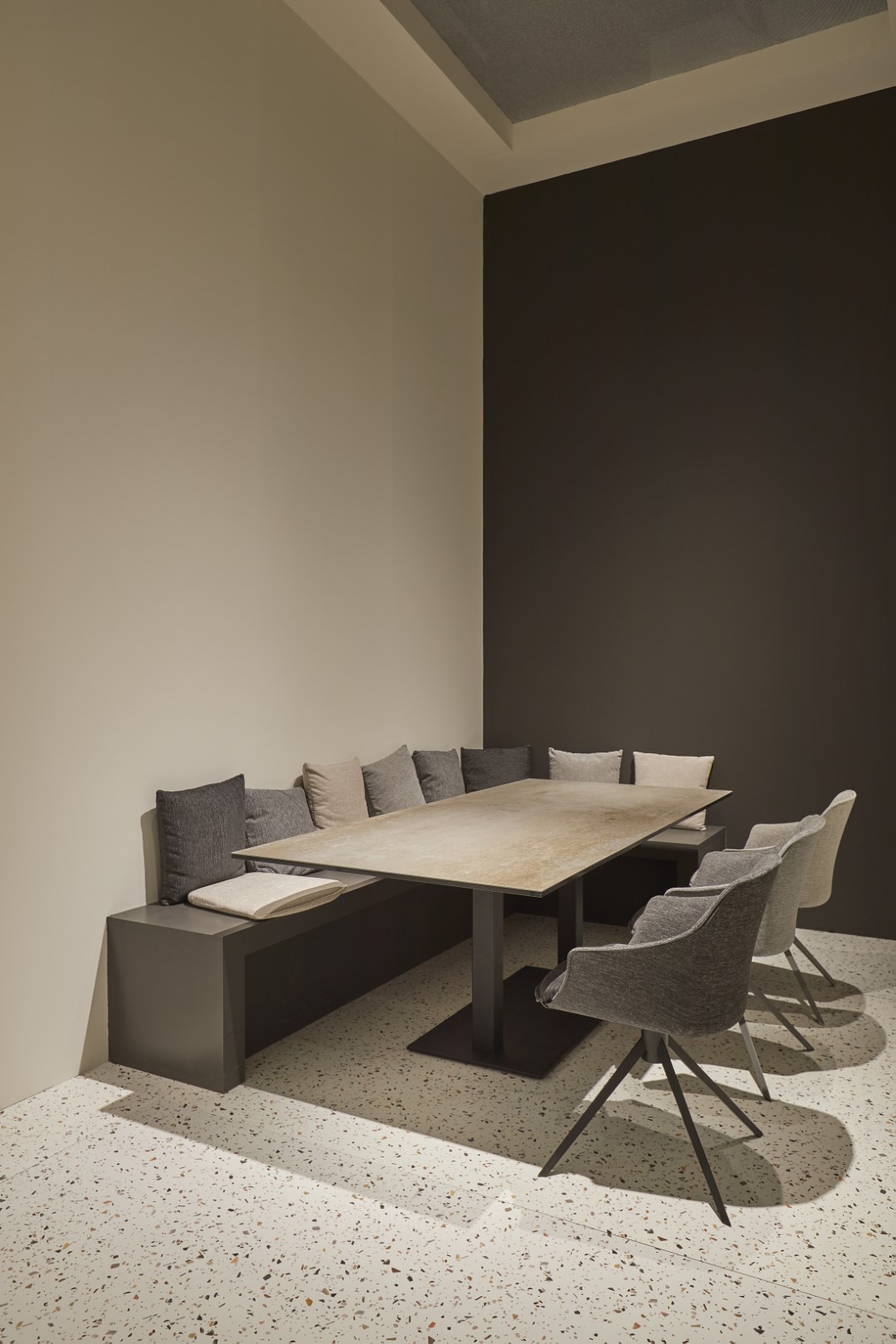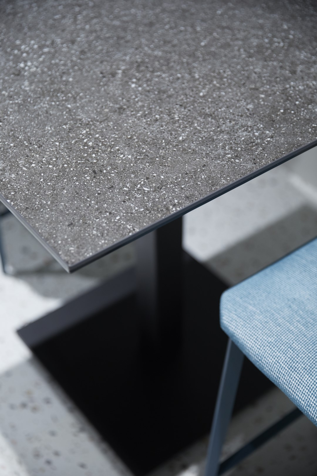 Le dessus robuste est résistant aux rayures et disponible dans plus de 30 céramiques. La structure en acier est disponible dans plus de 25 couleurs époxy.