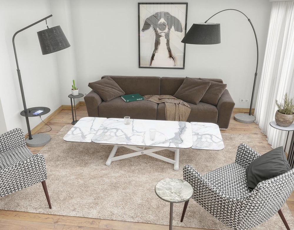 Par exemple, vous pouvez transformer cette table en table basse extensible en table de salle à manger.
