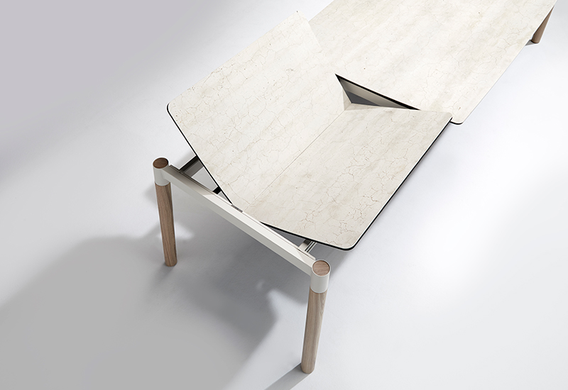 Magnifique table design en céramique qui s'inscrit dans le style scandinave grâce à ses pieds en bois de frêne.