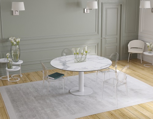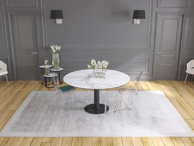 - Pied disponible en acier inoxydable poli, en acier laqué gris perle, noir ou blanc.