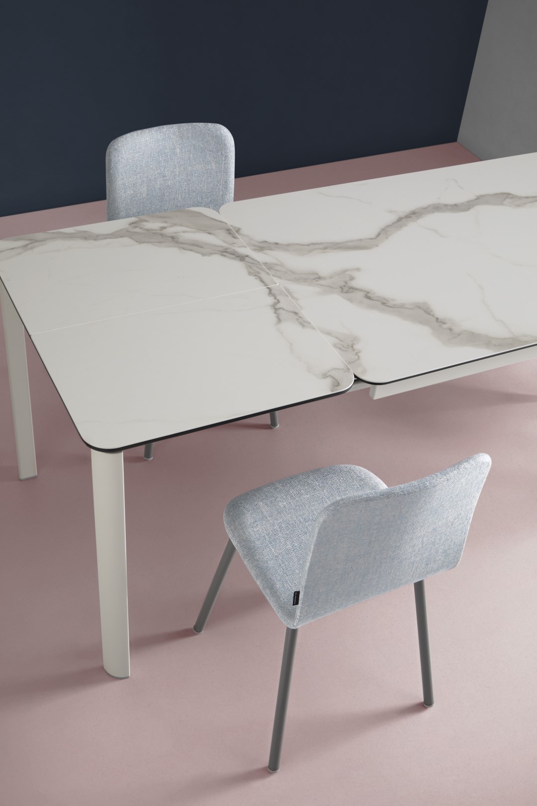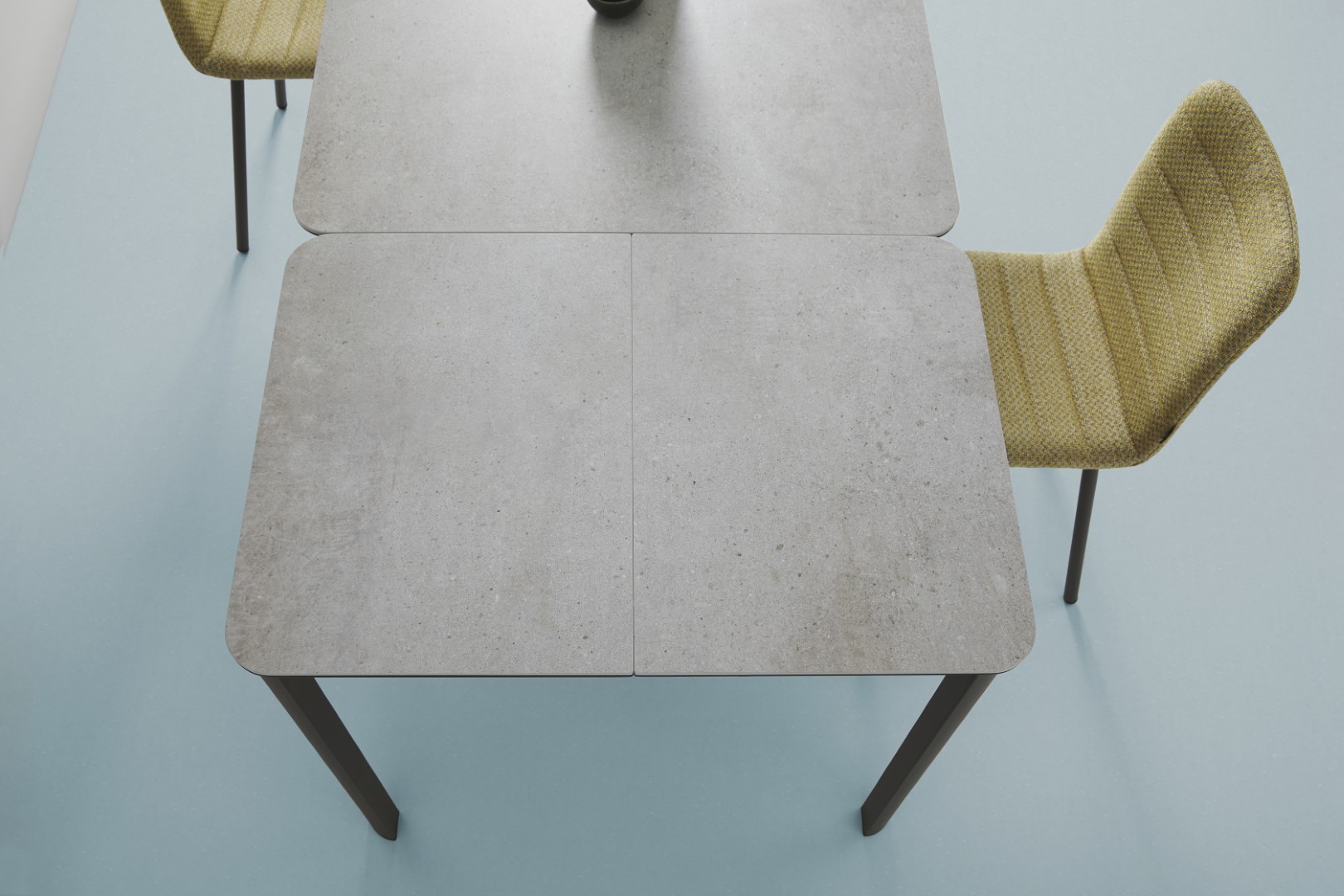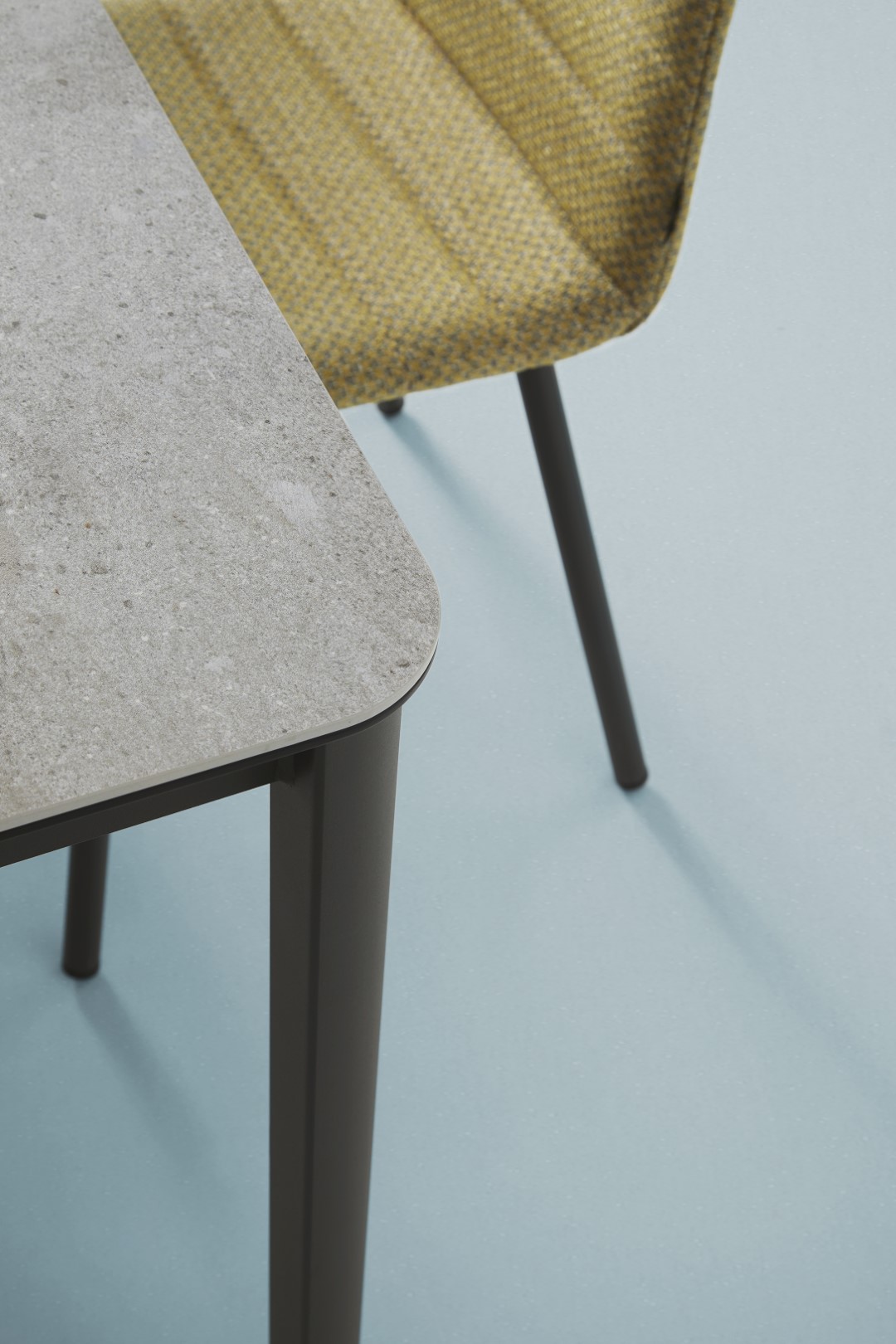 Le robuste dessus arrondi est résistant aux rayures, laminé sur verre de sécurité et disponible dans plus de 30 céramiques. La structure en acier est disponible dans plus de 25 couleurs époxy.