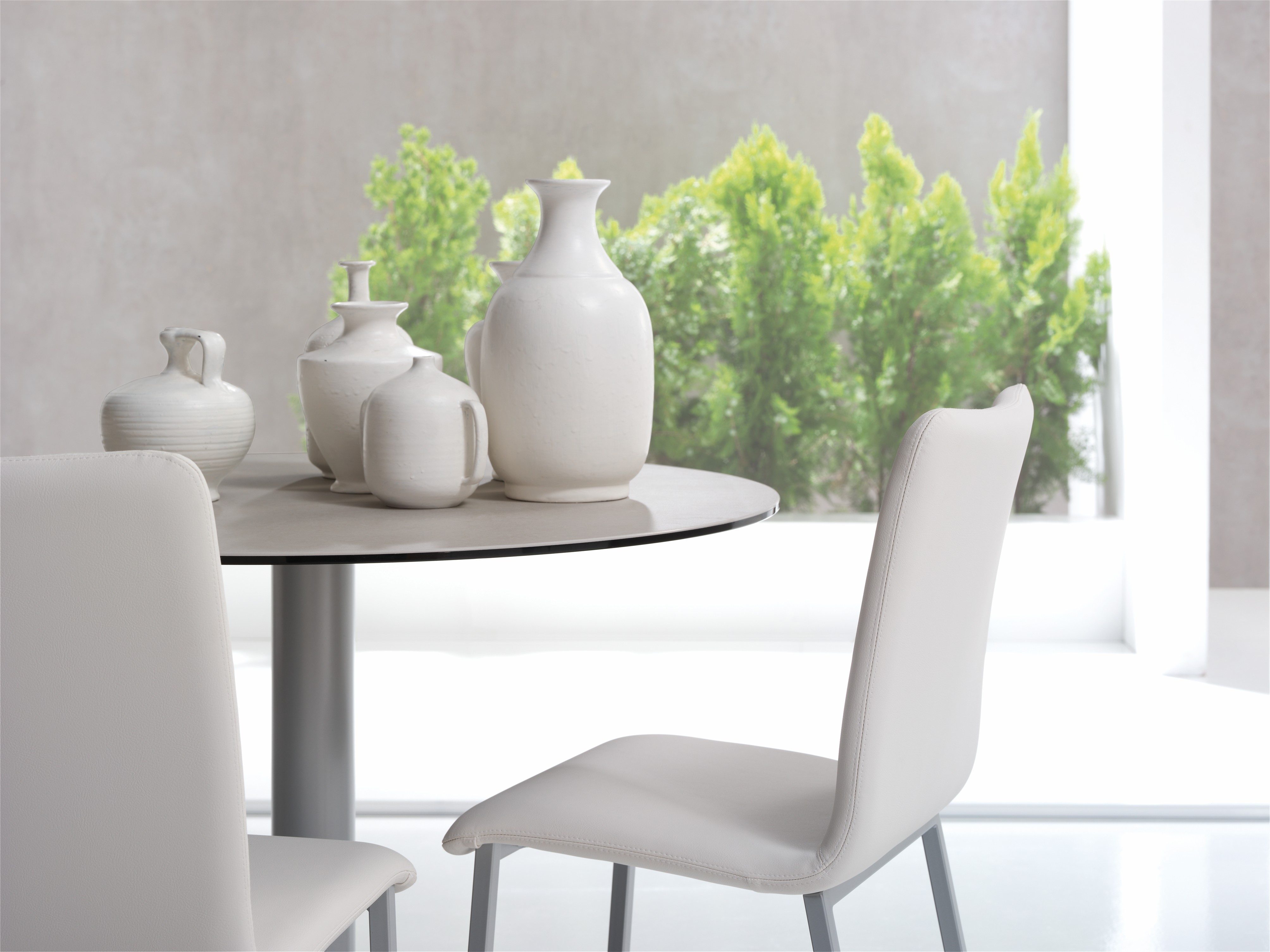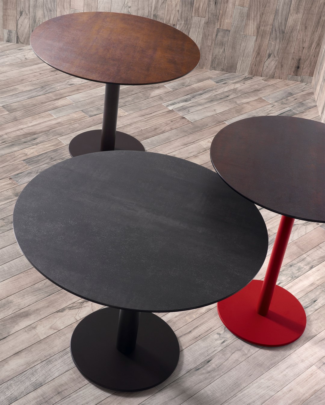 Le plateau robuste est résistant aux rayures et disponible dans plus de 30 céramiques. La structure en acier est disponible dans plus de 25 couleurs époxy.