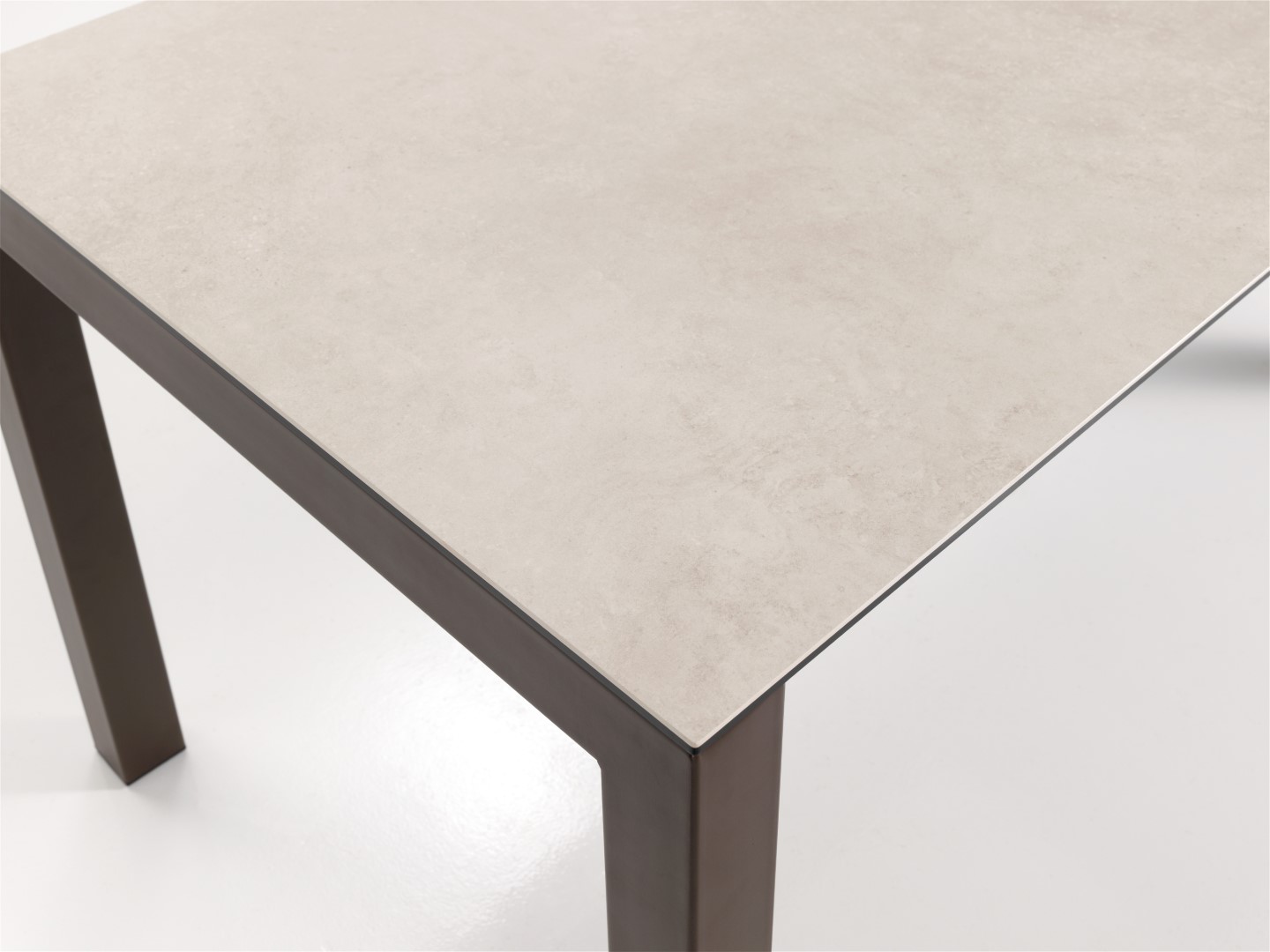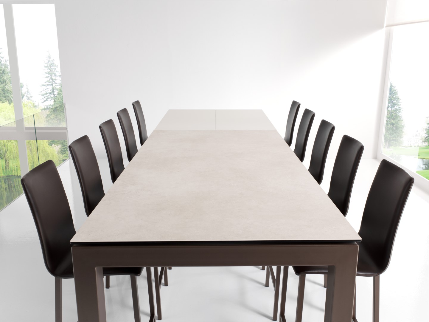Cette table moderne est conçue dans un style contemporain avec un dessus en céramique et un cadre en acier. La rallonge avec système papillon permet à toute la famille de dîner ensemble. Le dessus à l'aspect raffiné semble flotter, ce qui rend la table si excitante !