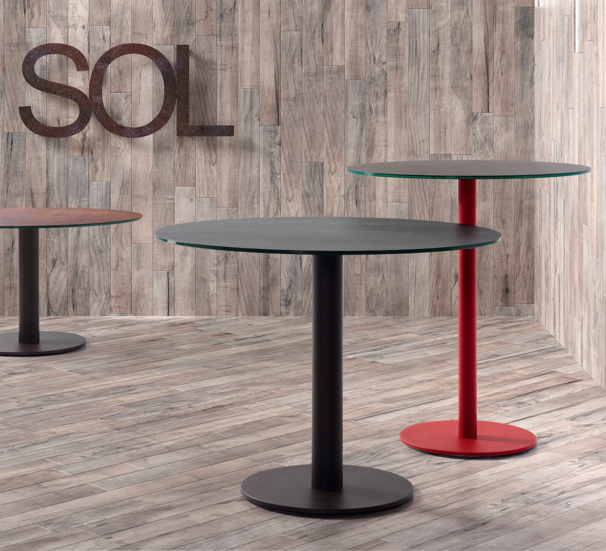 Le dessus robuste est résistant aux rayures et disponible dans plus de 30 céramiques. La structure en acier est disponible dans plus de 25 couleurs époxy.