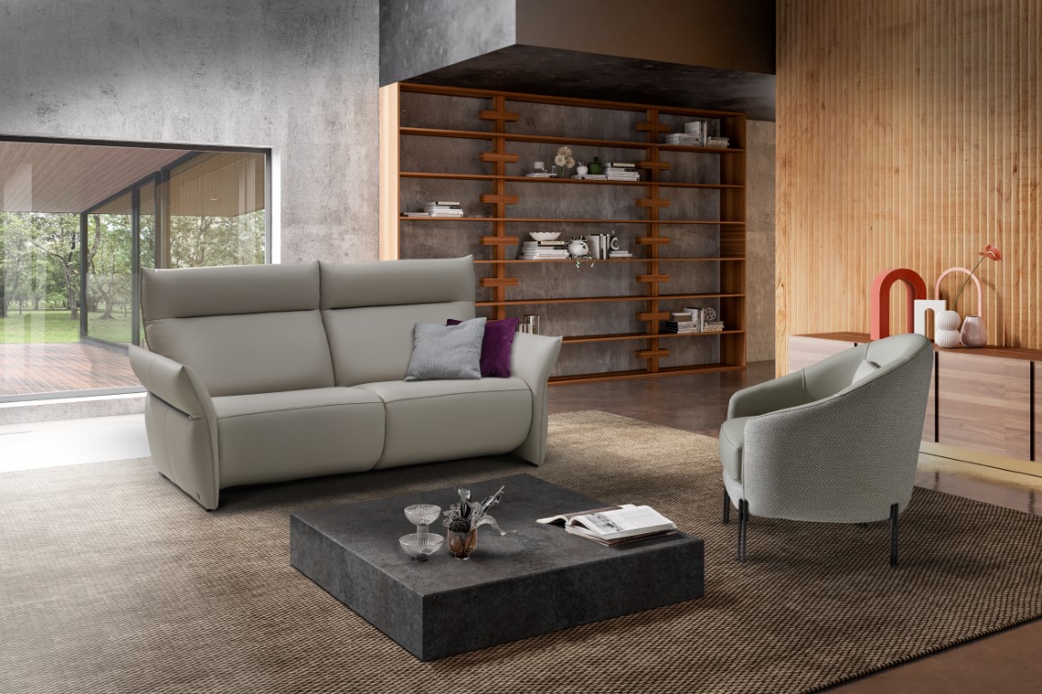 Ce salon majestueux attire tous les regards dans votre salle de séjour. Si vous recherchez le confort ultime, vous pouvez y ajouter le relax. Avec ses nombreuses options de cuirs et de tissus, il s'adaptera à tous les intérieurs.
