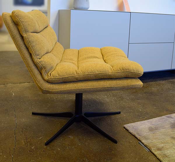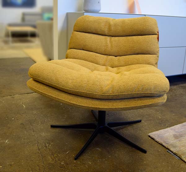 Le fauteuil bas Bruce est un véritable atout dans n'importe quelle pièce. Son design compact le rend très adapté aux petits espaces de vie. Sa base pivotante permet de suivre facilement les conversations.