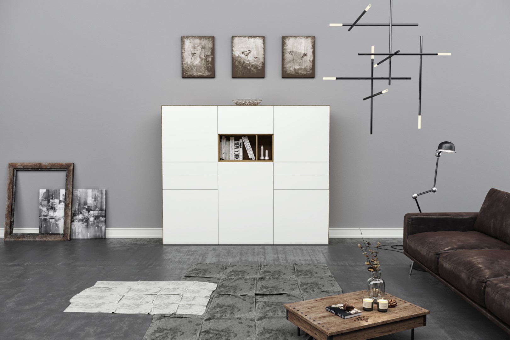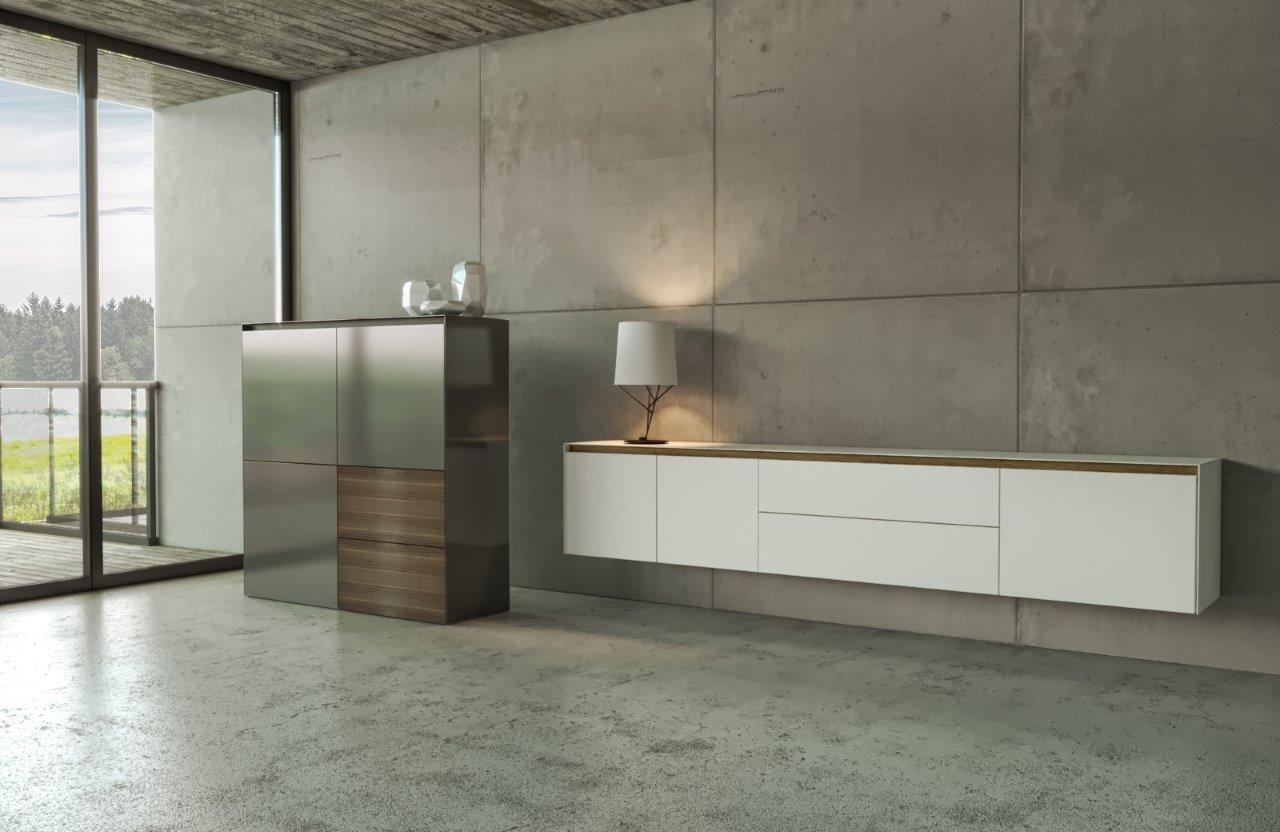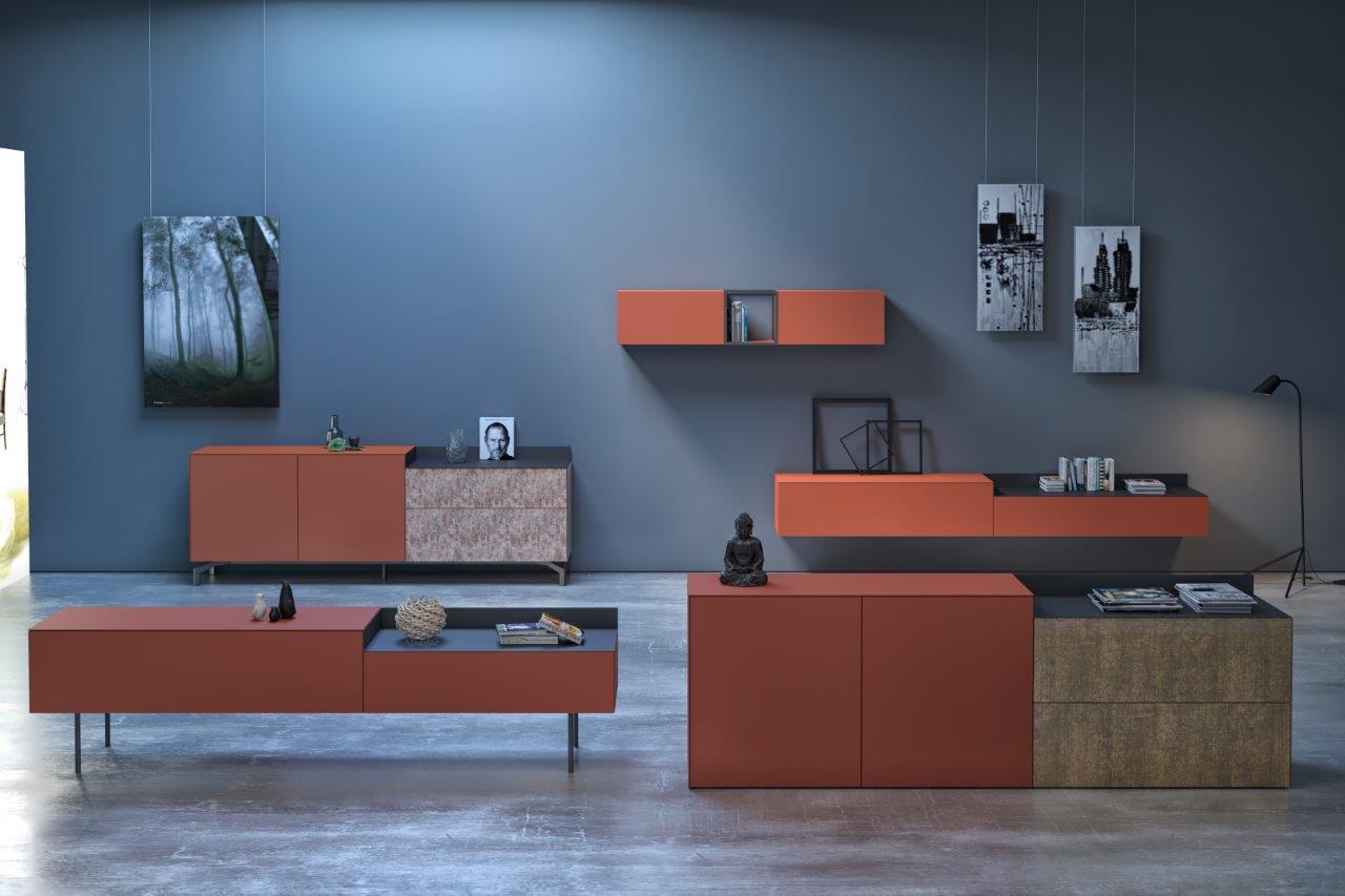 Dankzij de modules waarmee de tv-meubelen, dressoirs, barkasten en hangmeubelen worden opgebouwd, benaderen we maatwerk .