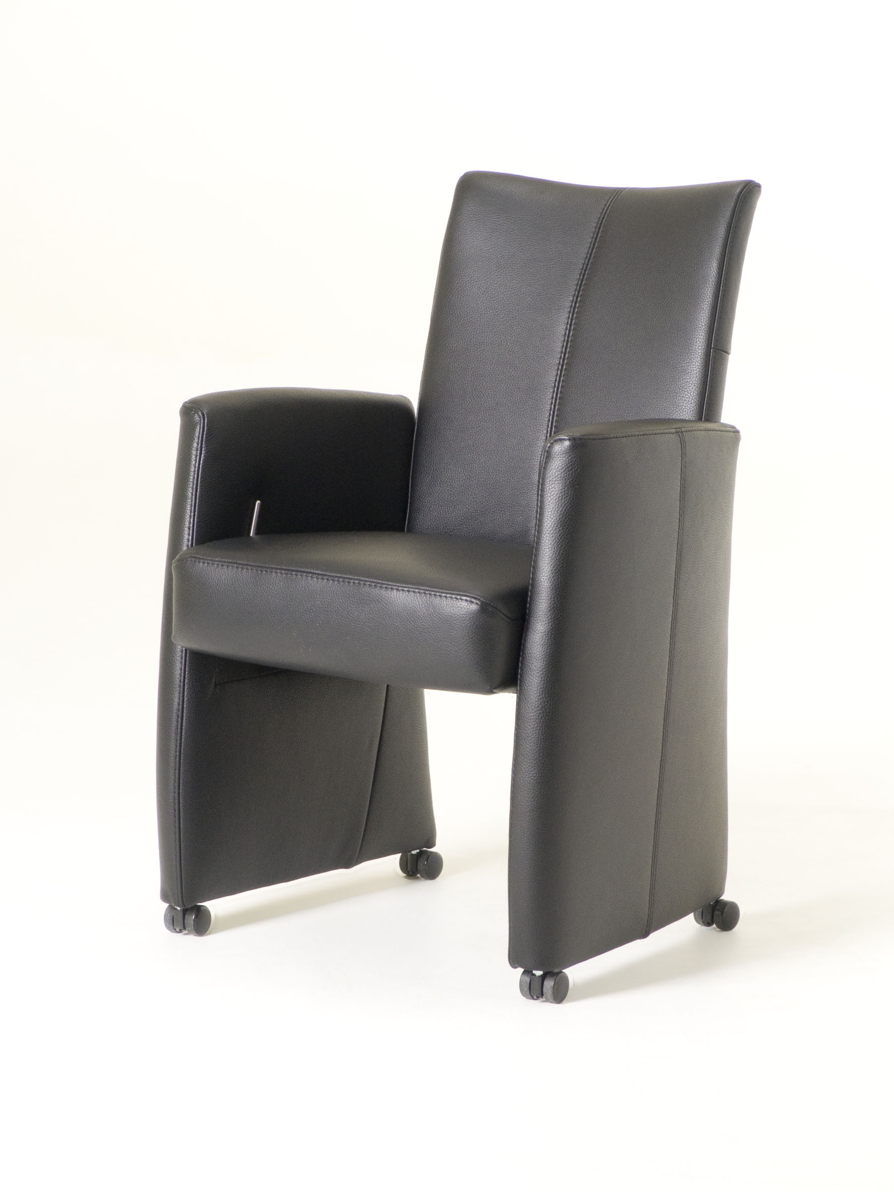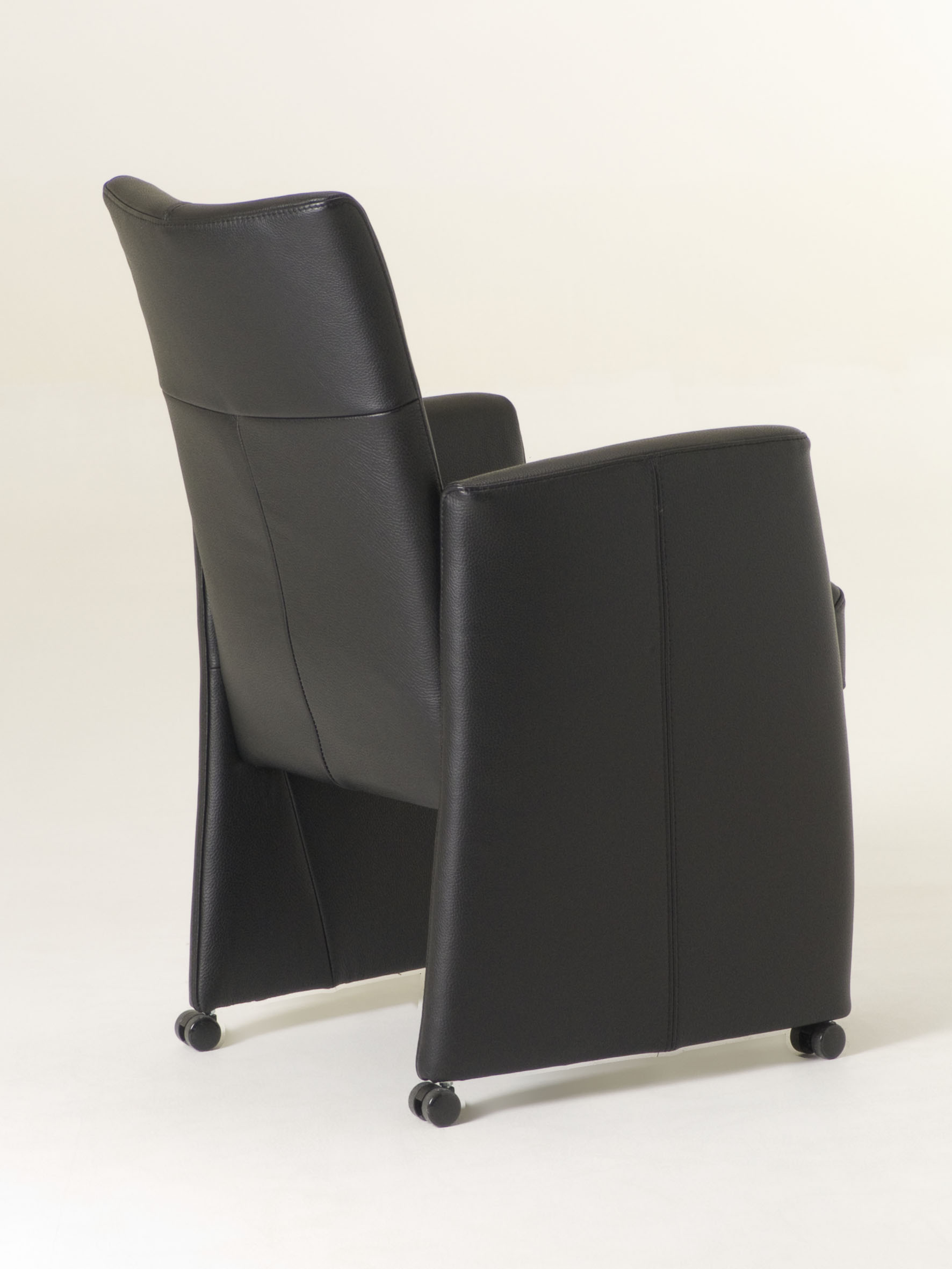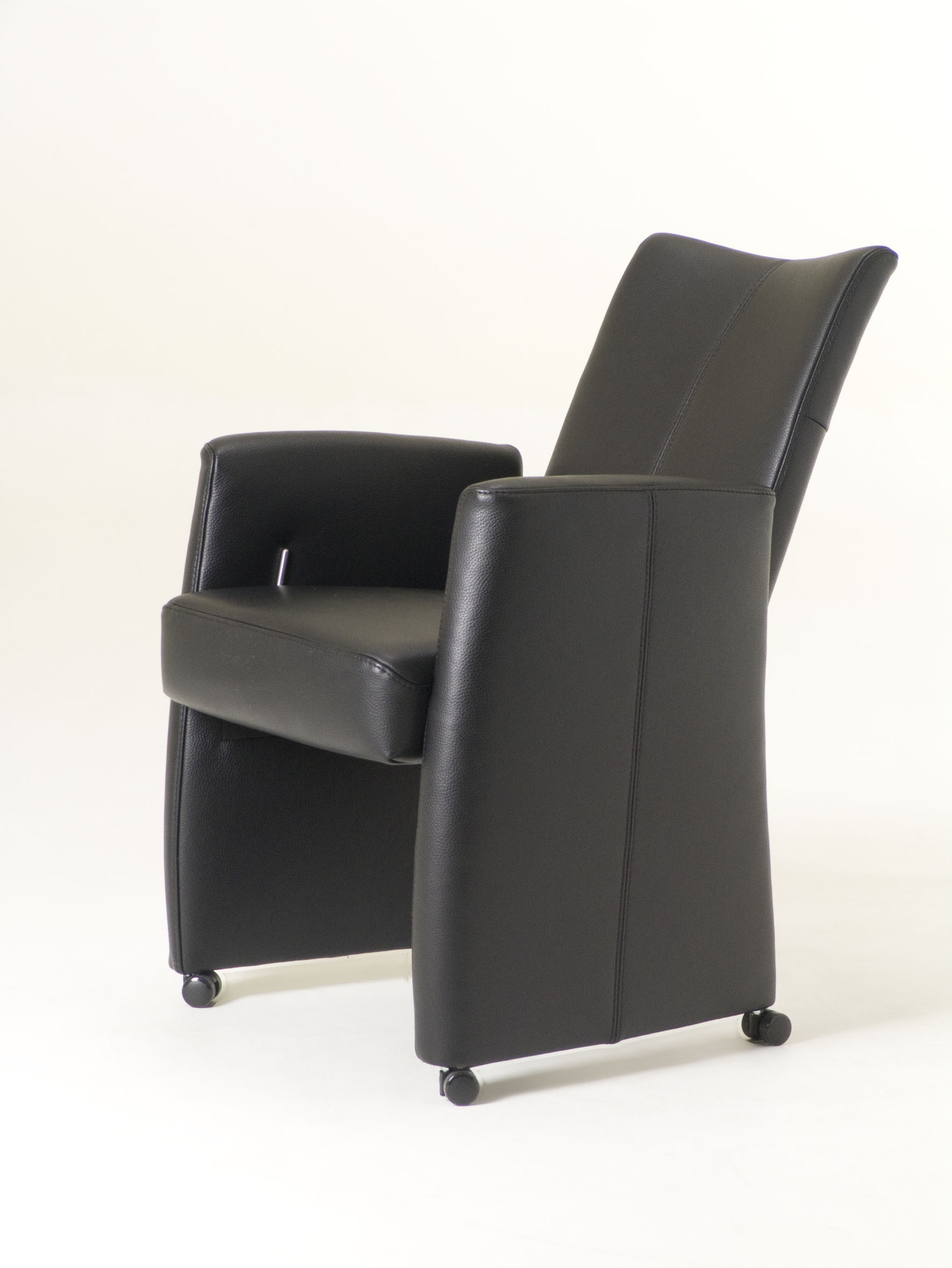 Deze dynamisch vormgegeven eetkamerfauteuil is perfect om lang mee na te tafelen. De Evi fauteuil is er ééntje met rugverstelling dmv een gasveer.