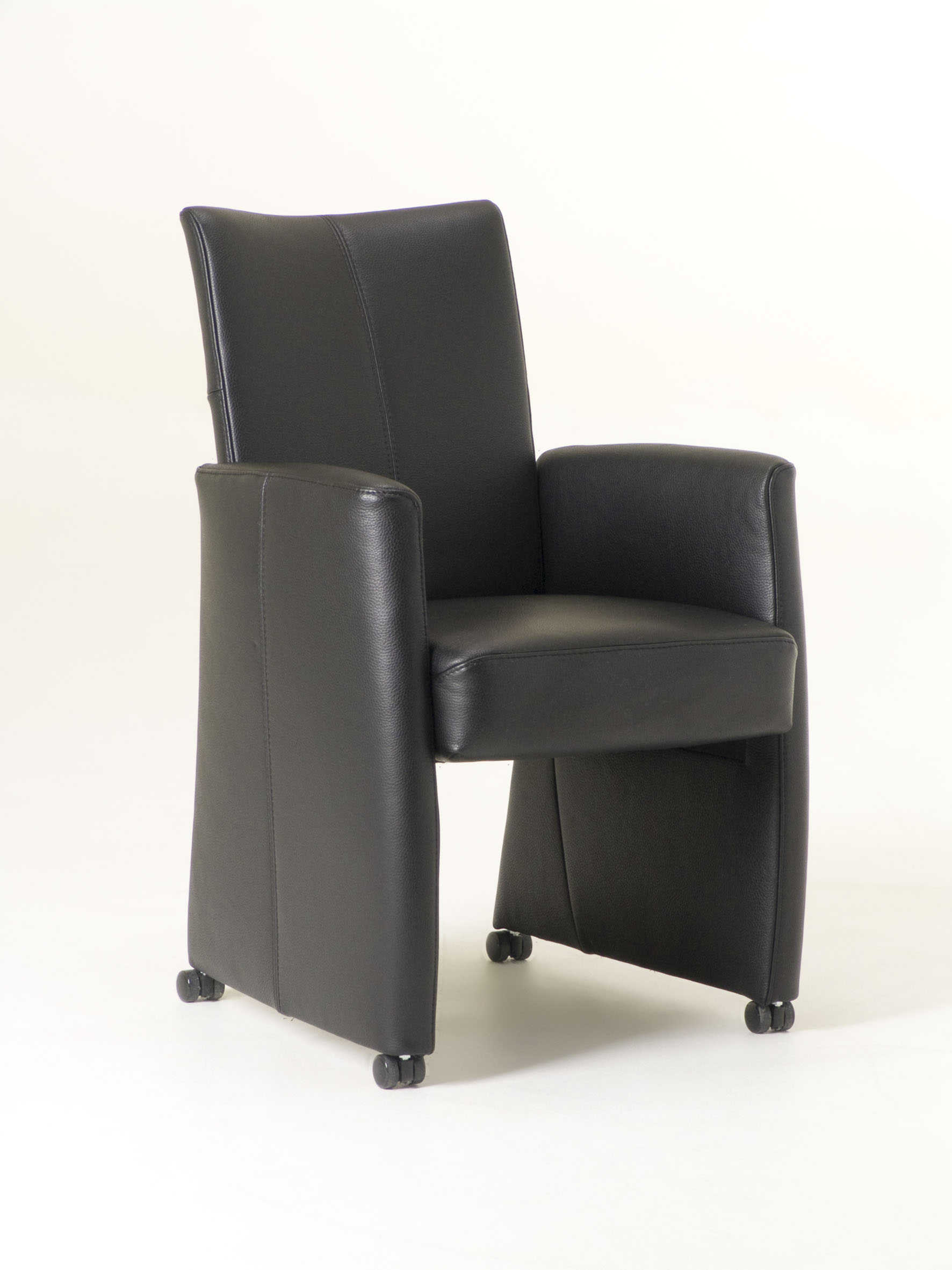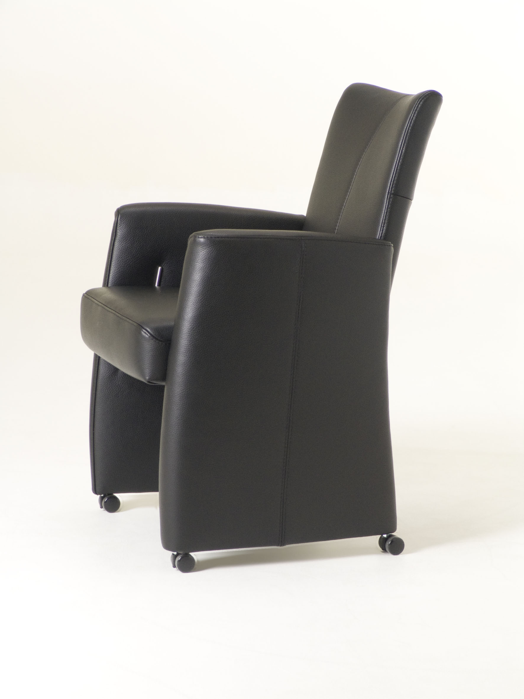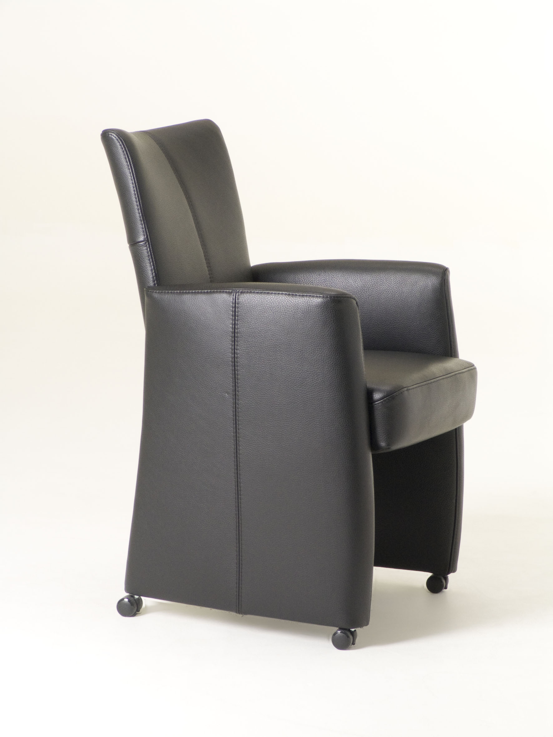 Deze dynamisch vormgegeven eetkamerfauteuil is perfect om lang mee na te tafelen. De Evi fauteuil is er ééntje met rugverstelling dmv een gasveer.