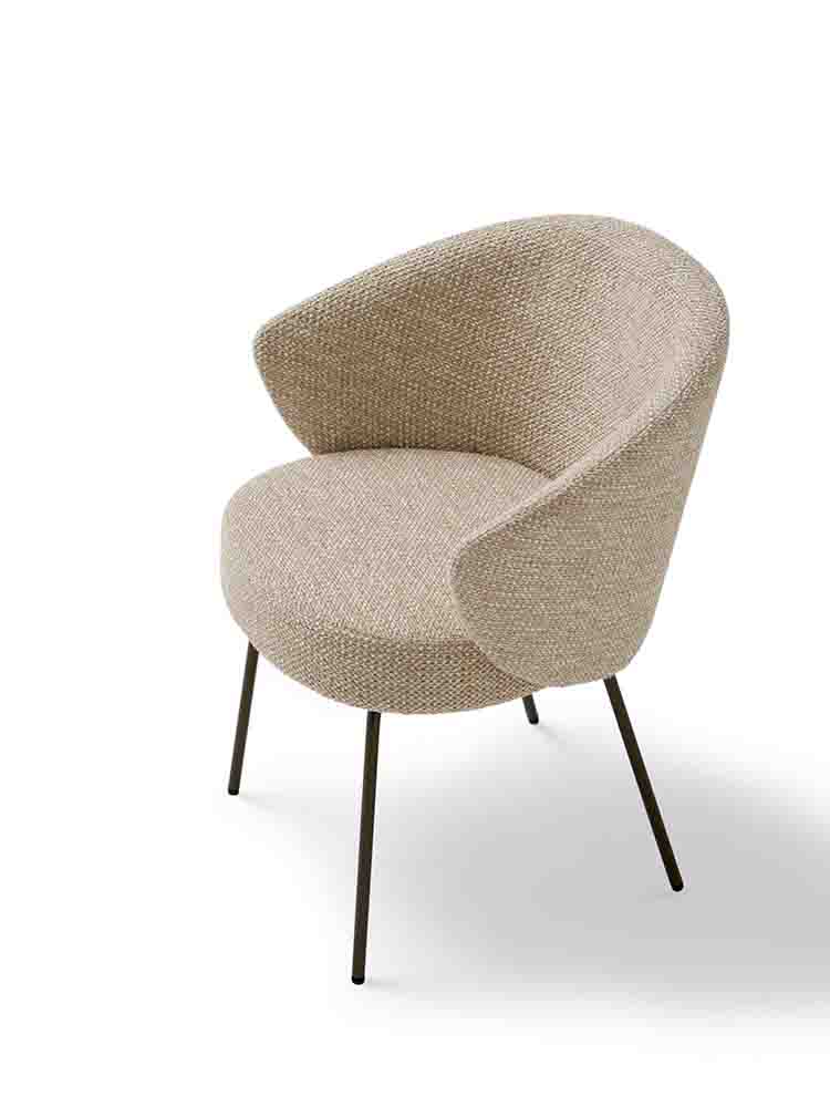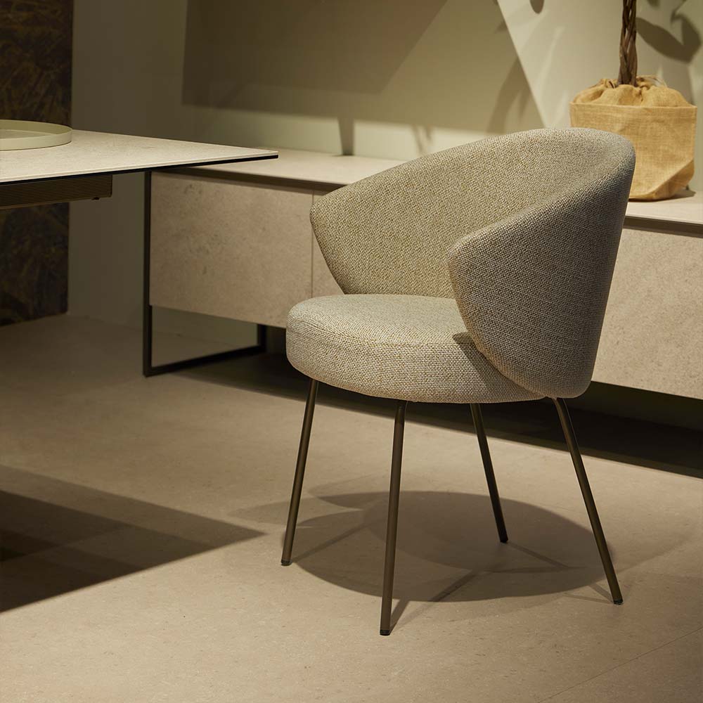 Met een uitzonderlijke balans tussen verfijning en comfort is de gestoffeerde stoel Gavi een icoon van elegantie, ontworpen om uitstekend comfort te bieden in verschillende omgevingen, van project- en openbare ruimtes tot woonomgevingen. De Arnau Reyna studio, achter de creatie, vond inspiratie in de anatomie van vogelvleugels om de kenmerkende armen van deze stoel vorm te geven, waardoor het een unieke en onderscheidende esthetiek krijgt.