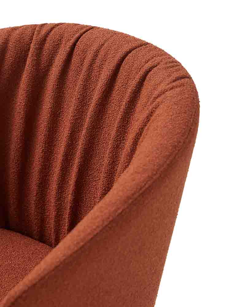 De meest opvallende eigenschap van de Gavi stoel blijft de manier waarop hij de gebruiker omarmt en een omhullende ervaring biedt die verder gaat dan eenvoudige functionaliteit. De gebogen, uitnodigende vorm van de armen voegt niet alleen een vleugje elegantie toe, maar geeft ook een onderscheidend karakter aan elke ruimte waarin hij wordt geplaatst.