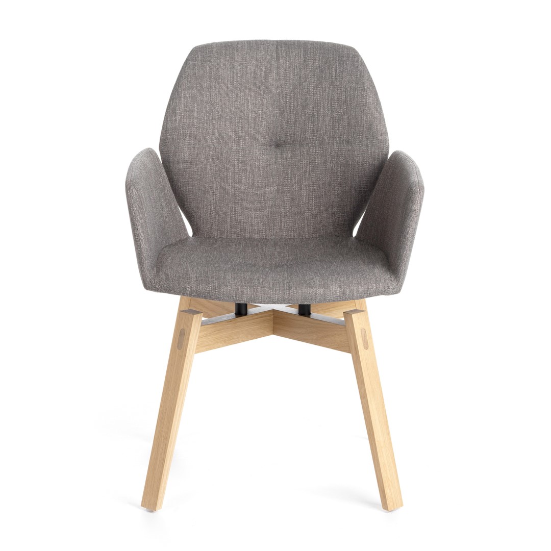 Met zijn kuip voorzien van armleuningen is deze Mood#95-stoel ontworpen voor optimaal zitcomfort. Hij is volledig personaliseerbaar: van de bekleding tot de metalen of houten voet.