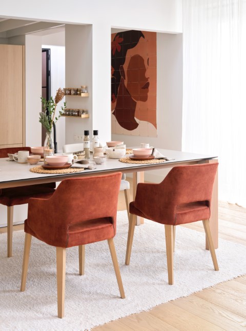 Lena laat zich enerzijds opmerken door de gebogen en open rugleuning. Anderzijds zorgt een speciaal ontwikkelde schuimcombinatie voor een comfortniveau om u tegen te zeggen.