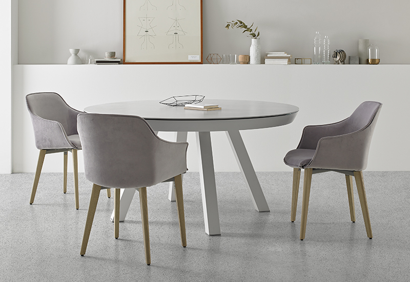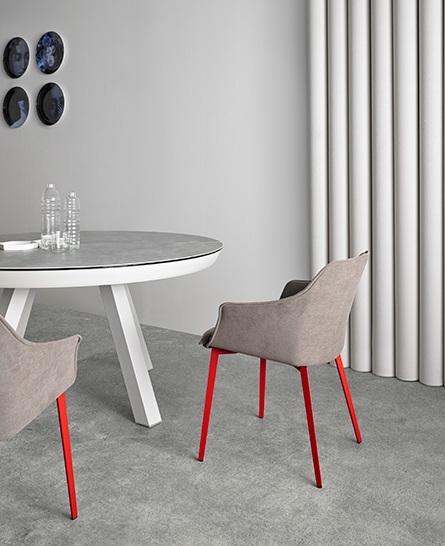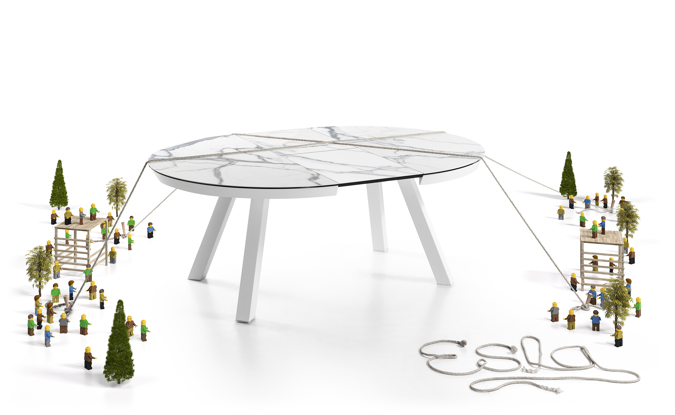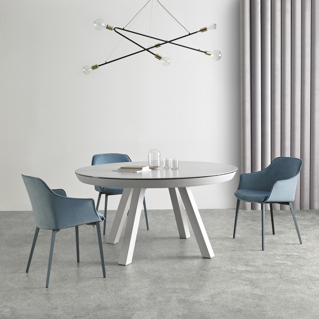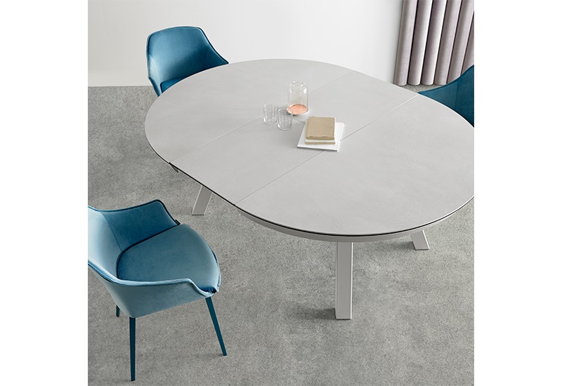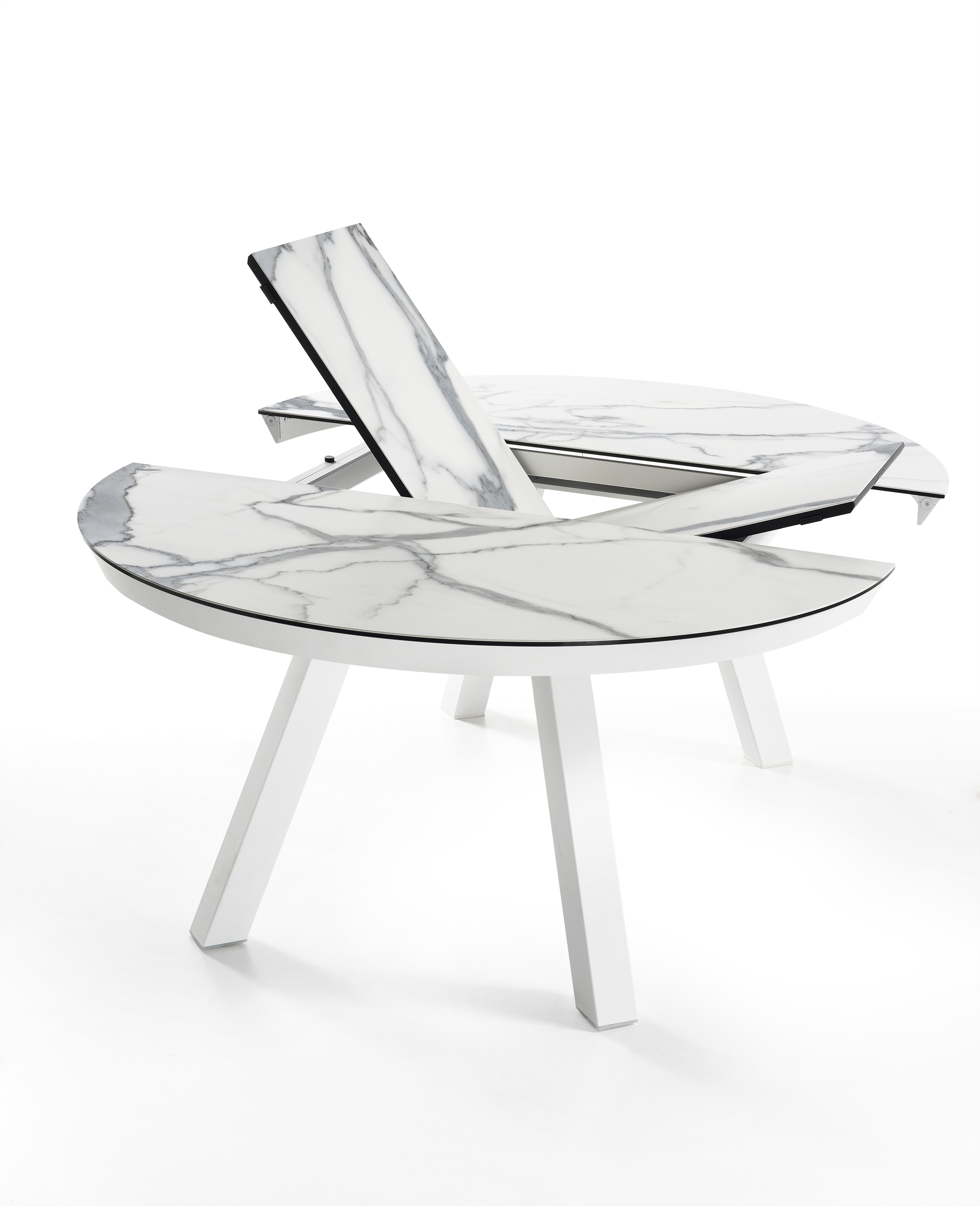 Deze keramische tafel Esla is verlengbaar door een uniek, eenvoudig uitreksysteem. Van een ronde compacte tafel kunt u ze verlengen tot een ovale tafel.