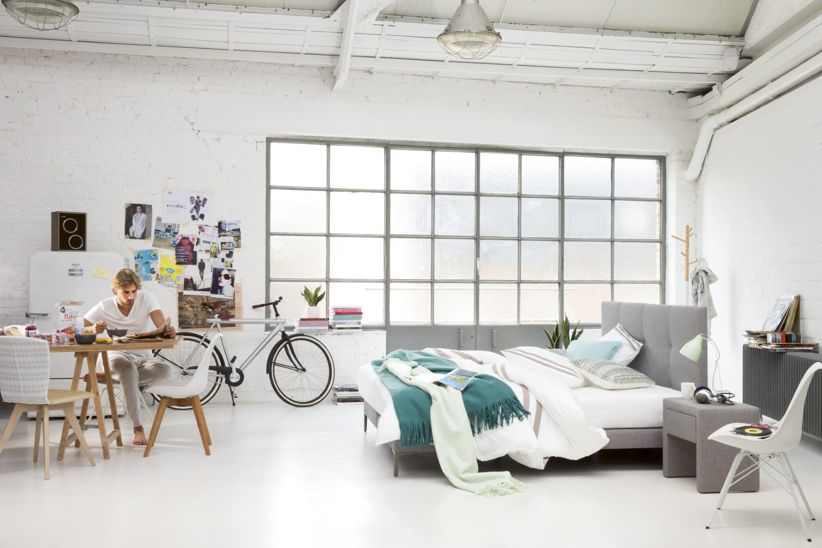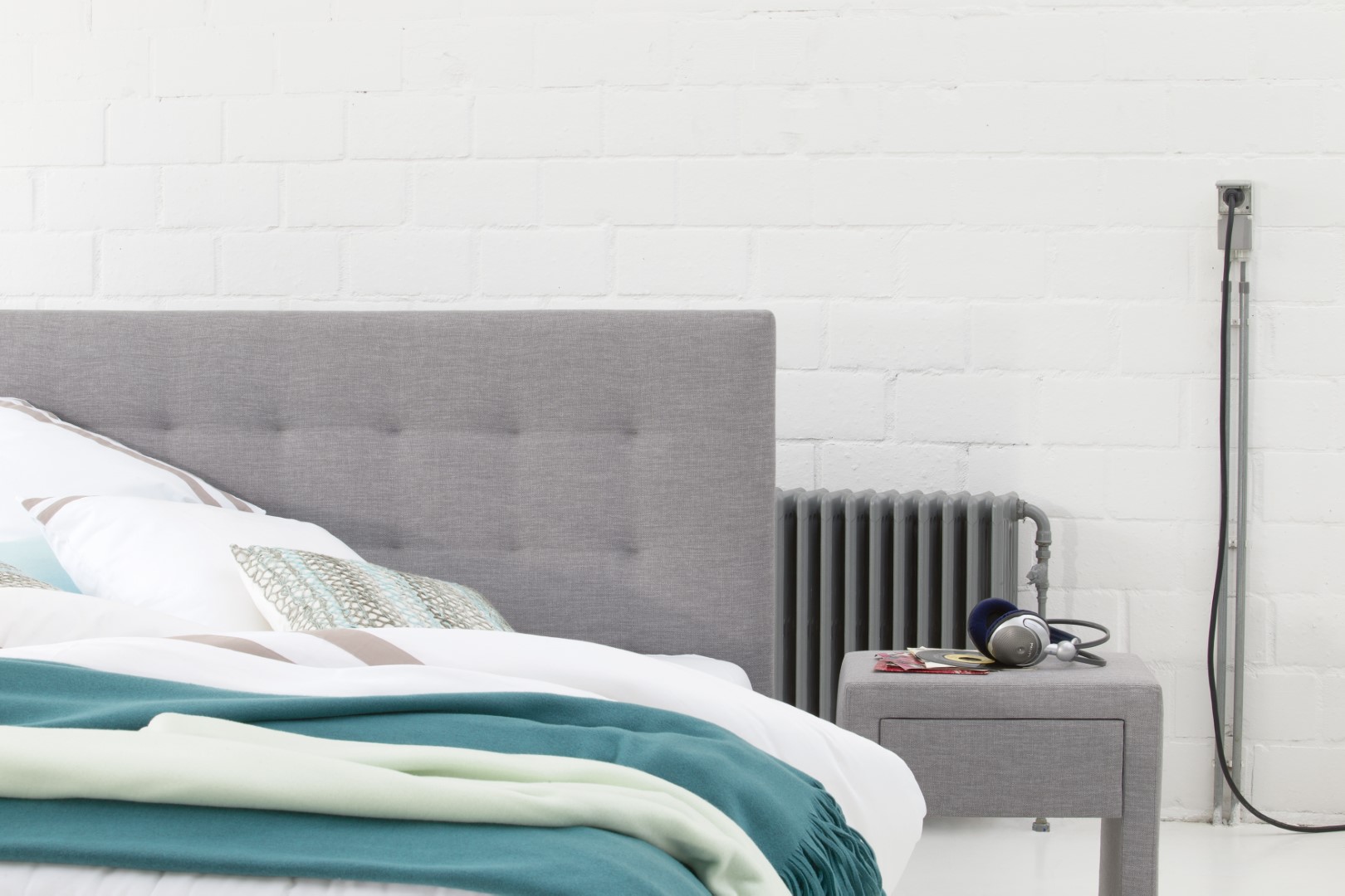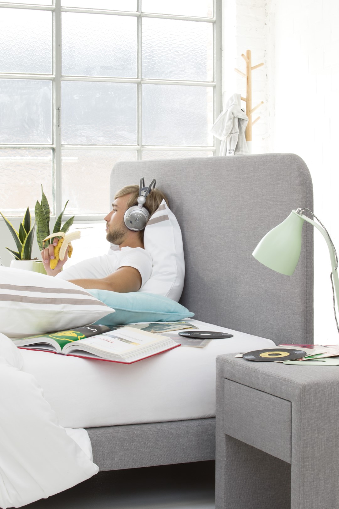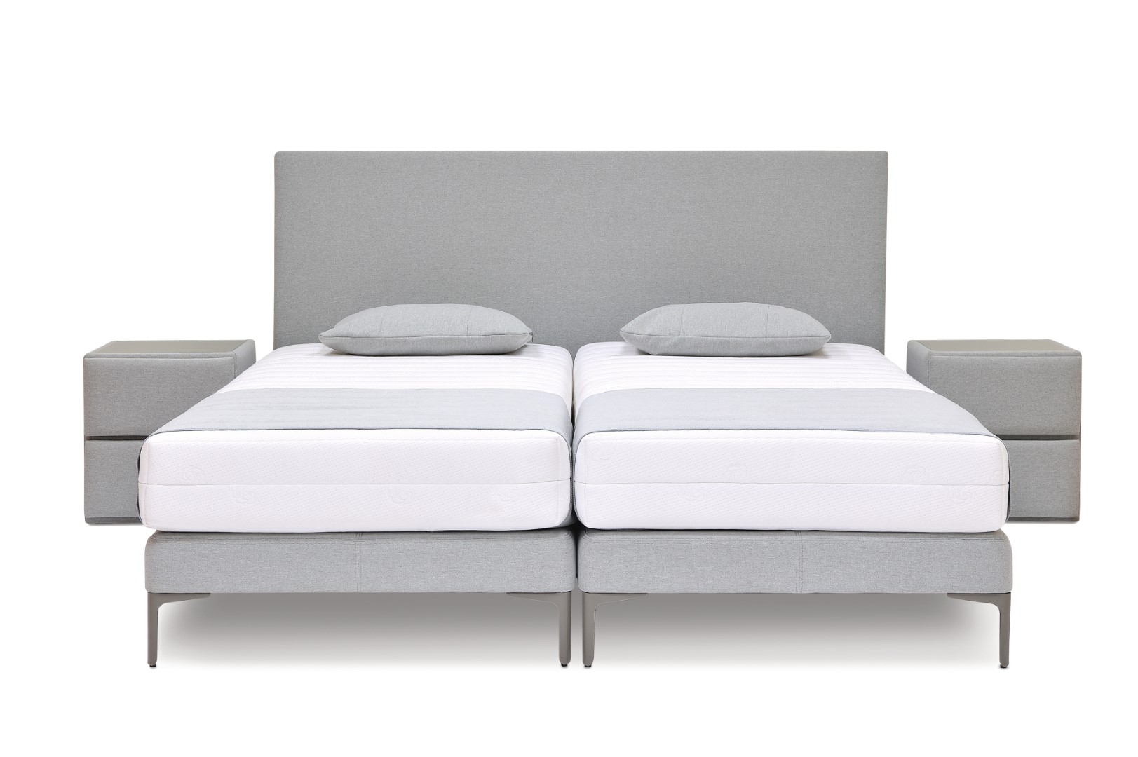 Slanke vaste boxpring verkrijgbaar met verschillende hoofdborden en pootjes.