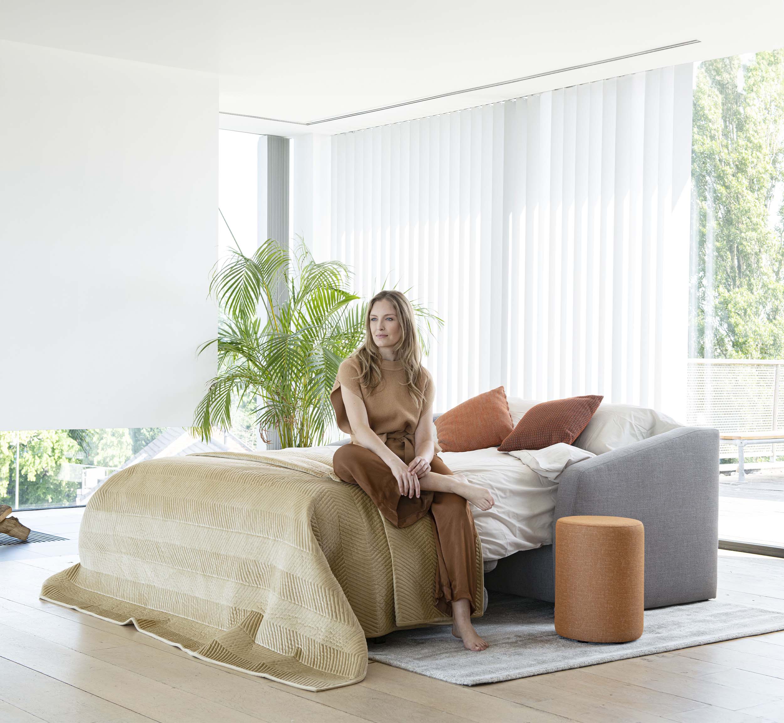 Het nieuwste model in de Premium collectie. De originele aflopende armsteun en de ronde vormen geven deze klassieke slaapbank een moderne toets.