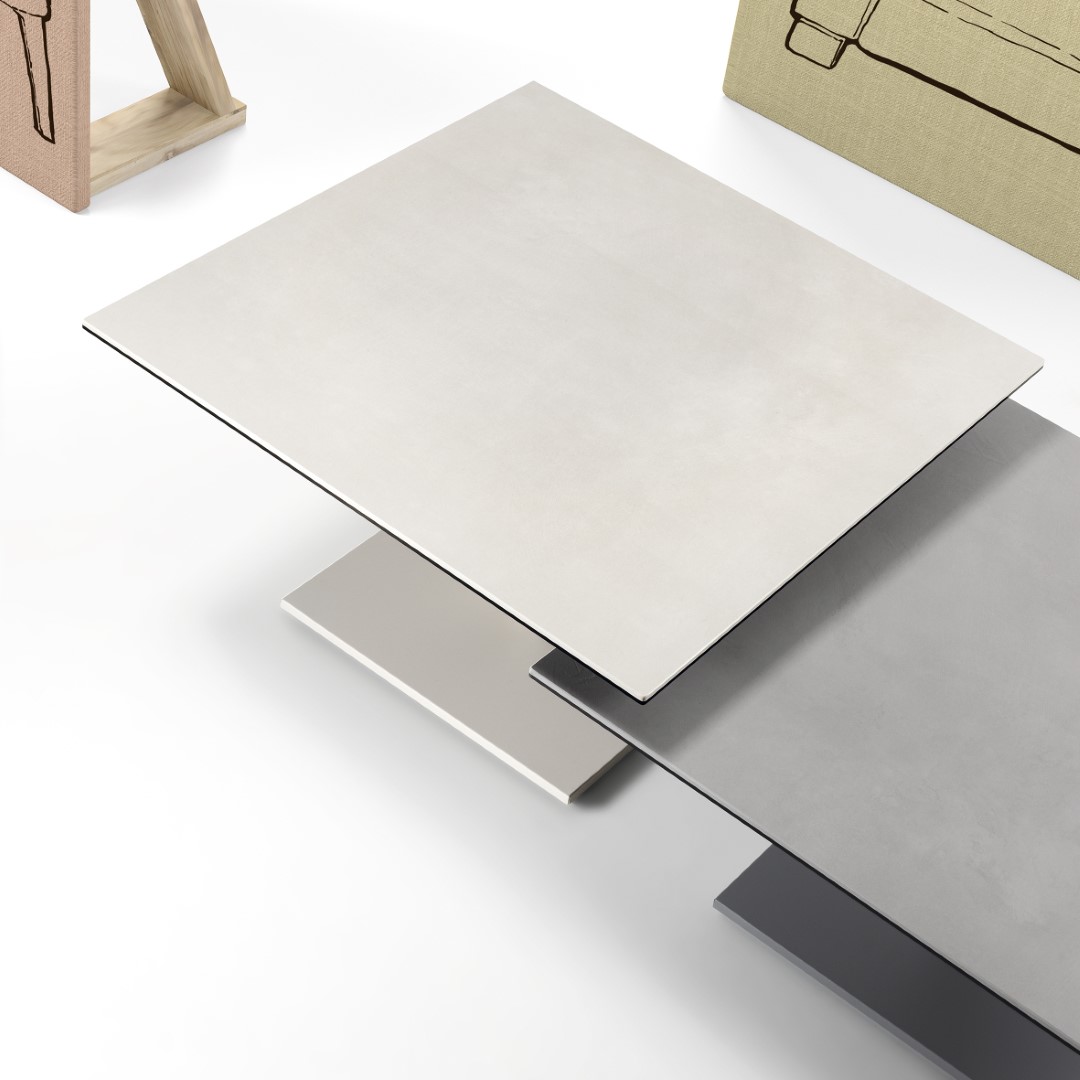 Het stevige bovenblad is krasbestendig en verkrijgbaar in meer dan 30 keramieken. De stalen structuur in meer dan 25 epoxy kleuren.