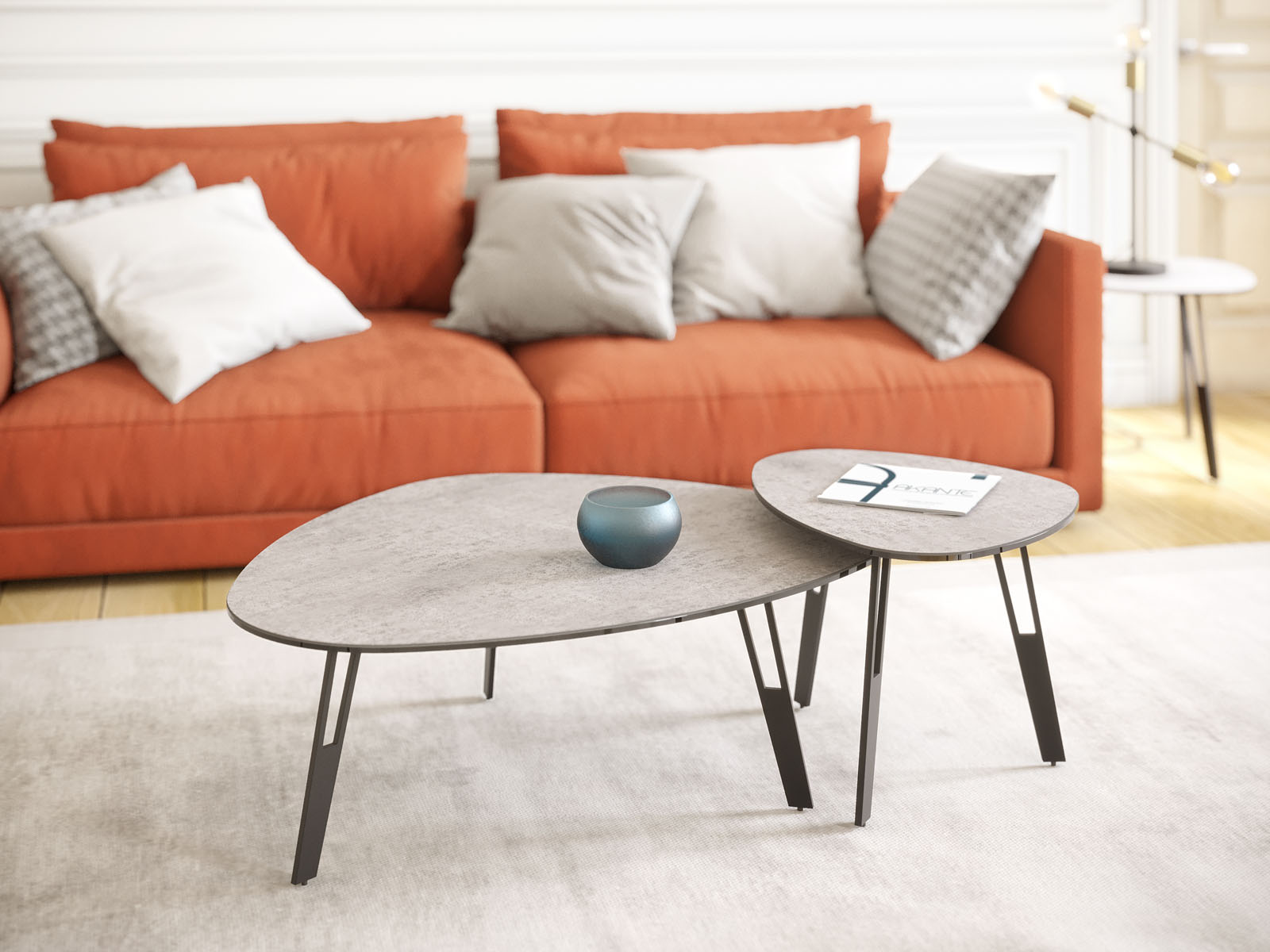 Om fijnheid met lichtheid te combineren in je woonkamer is de salontafel Galet een must. De uitgesneden holle, mat gelakte poten van zwart staal maken van deze tafel een lust voor het oog. De keramische plaat is 3 mm dik en verlijmd op een glasplaat van 6 mm om een uitstekende weerstand te garanderen.