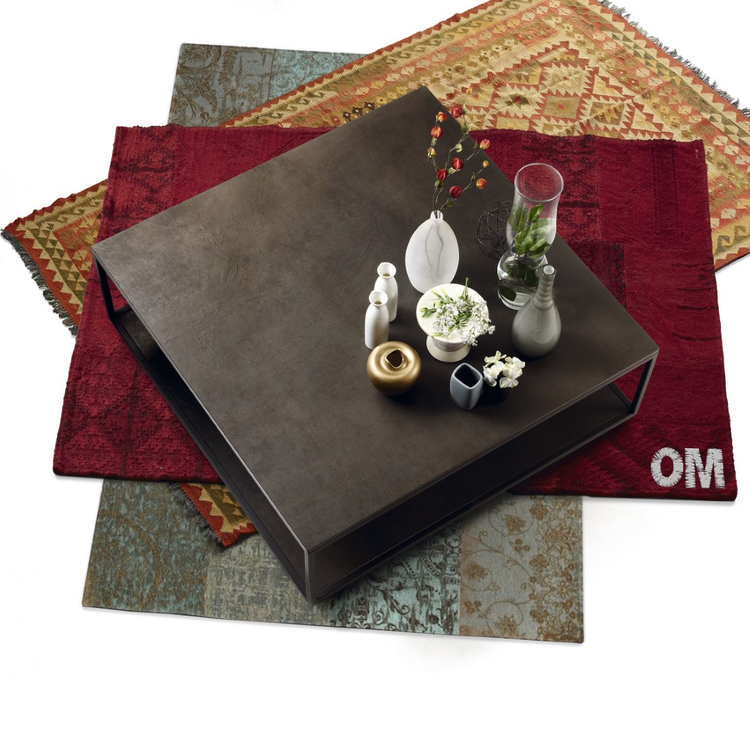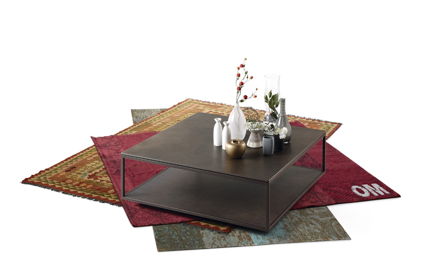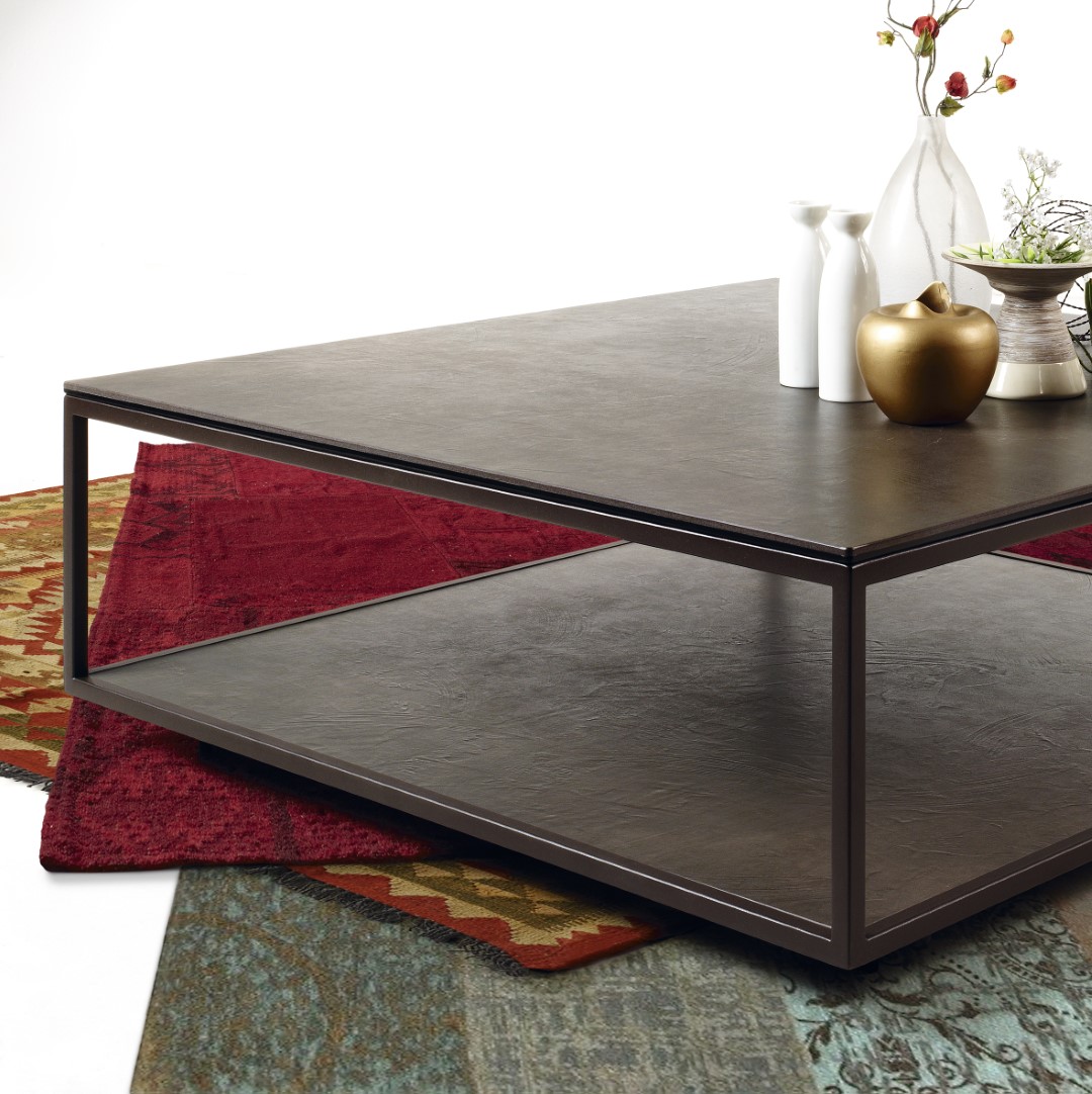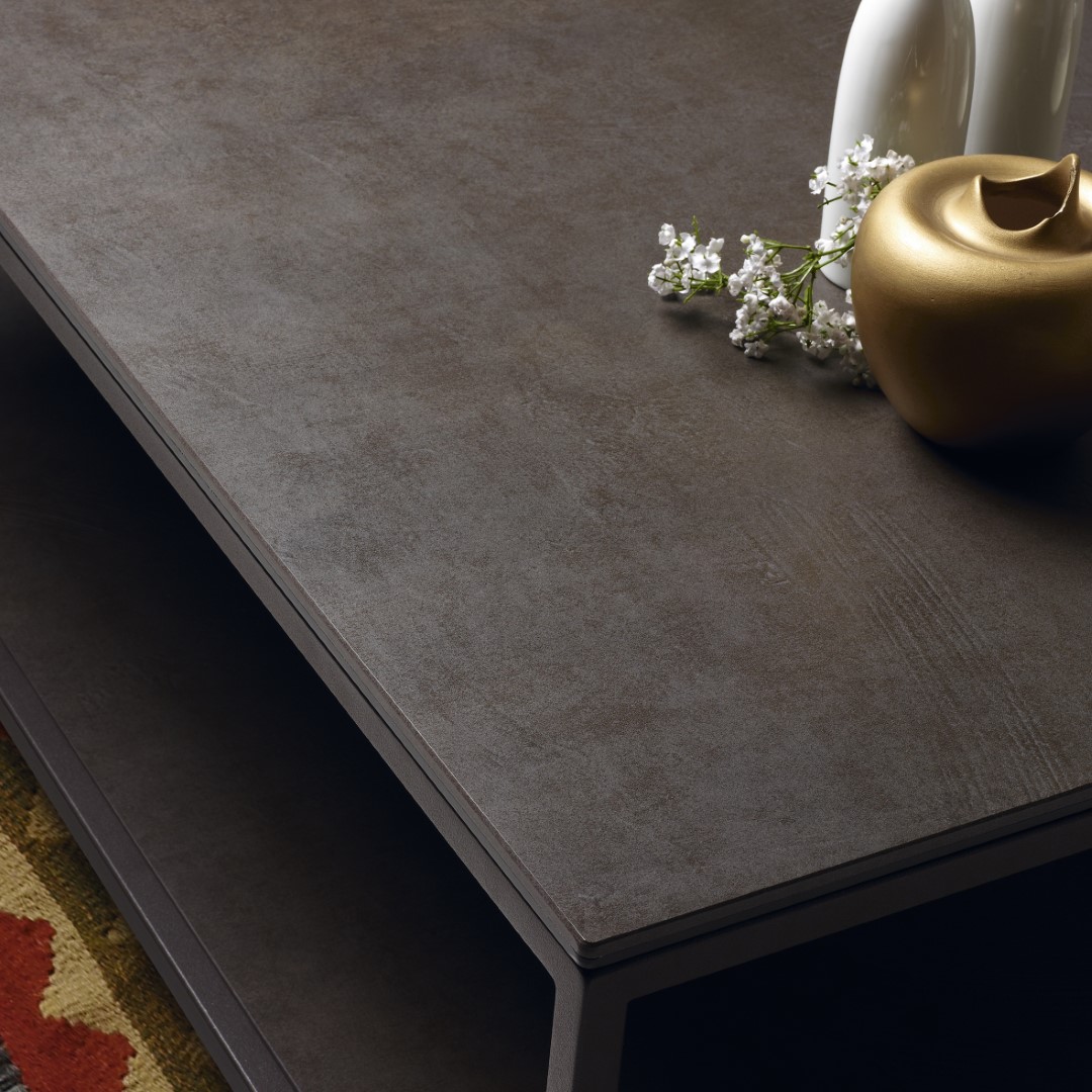 De stevige tafelbladen zijn krasbestendig, gelamineerd op veiligheidsglas en verkrijgbaar in meer dan 30 keramieken. De stalen structuur in meer dan 25 epoxy kleuren.