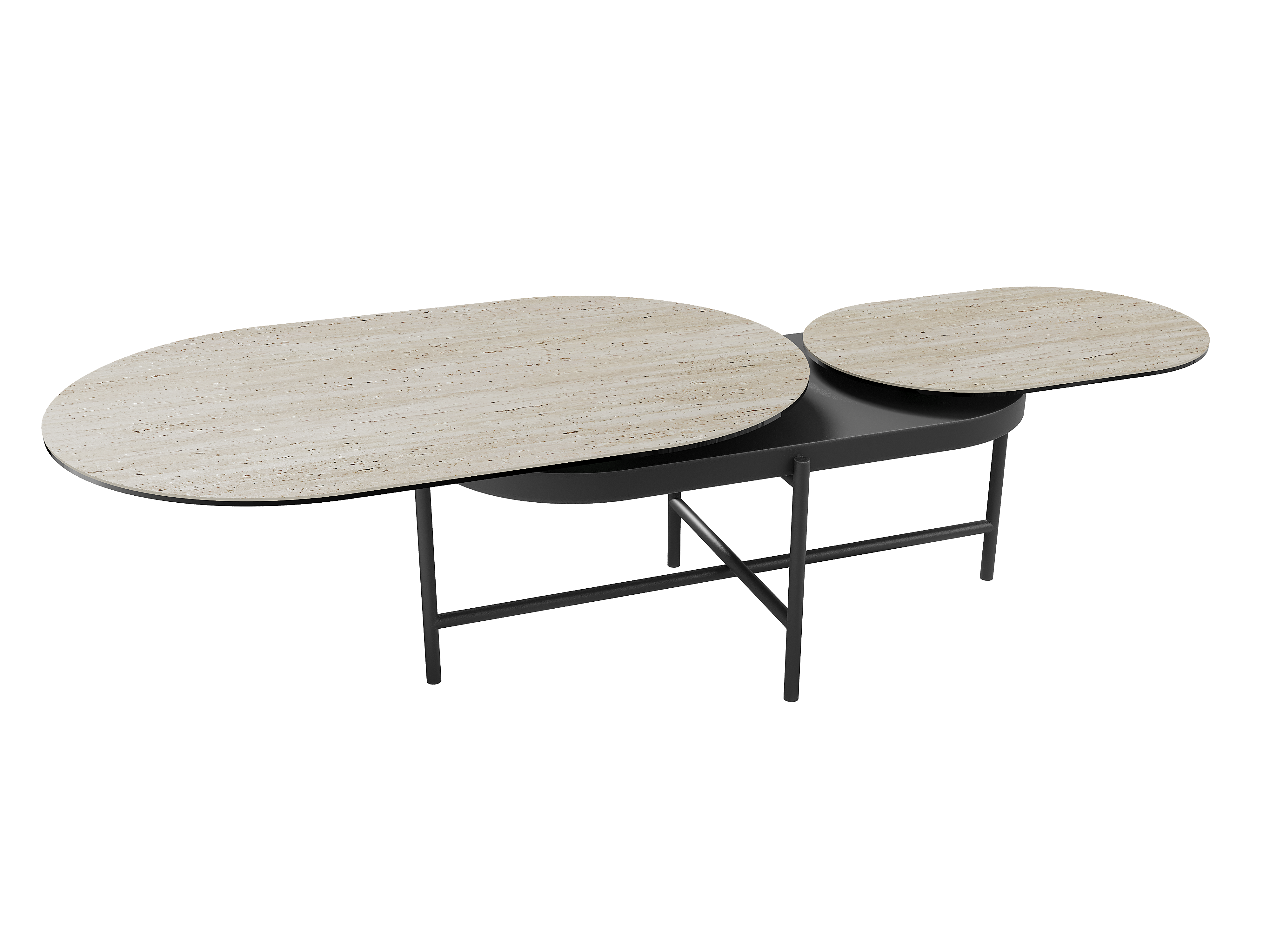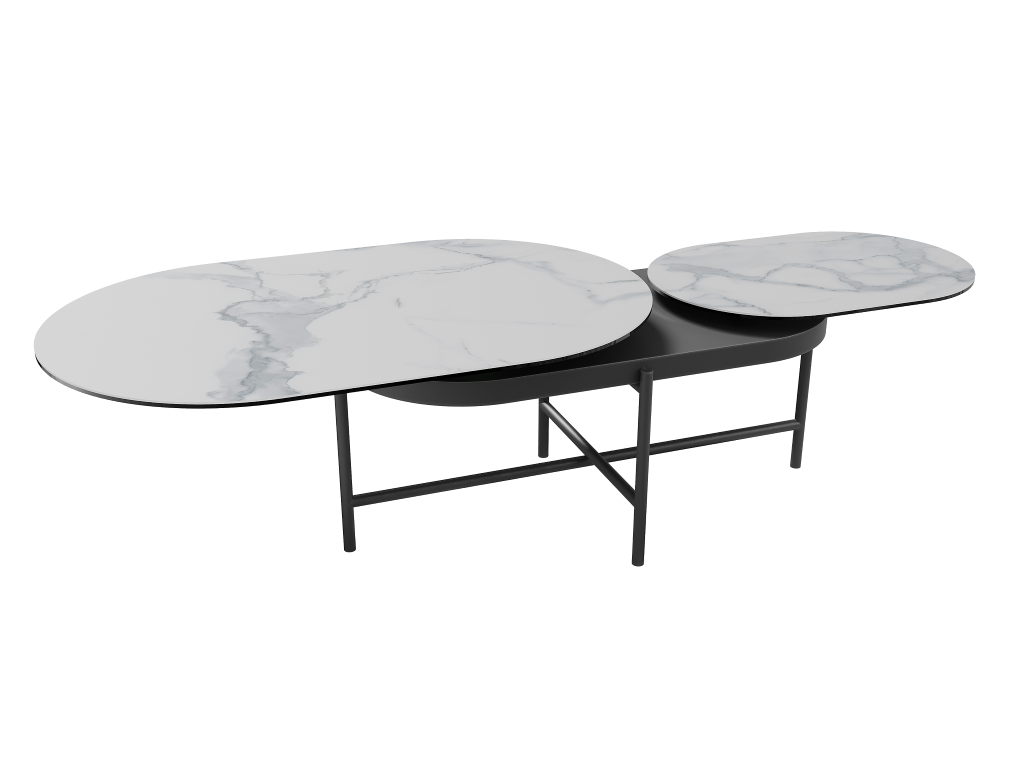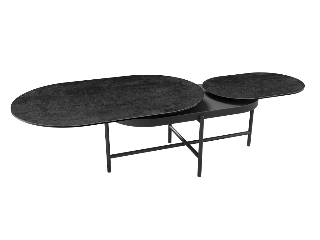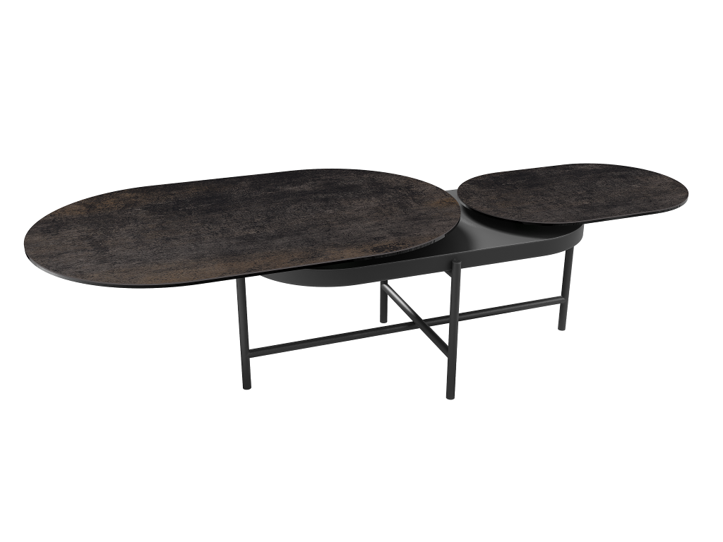 Deze salontafel is perfect voor elke situatie. Met de uitschuifbare bladen kun je de tafel eenvoudig aanpassen aan jouw behoeften, of je nu meer of minder ruimte nodig hebt. Dankzij de brede keuze aan keramiekkleuren past deze salontafel moeiteloos in elk interieur.