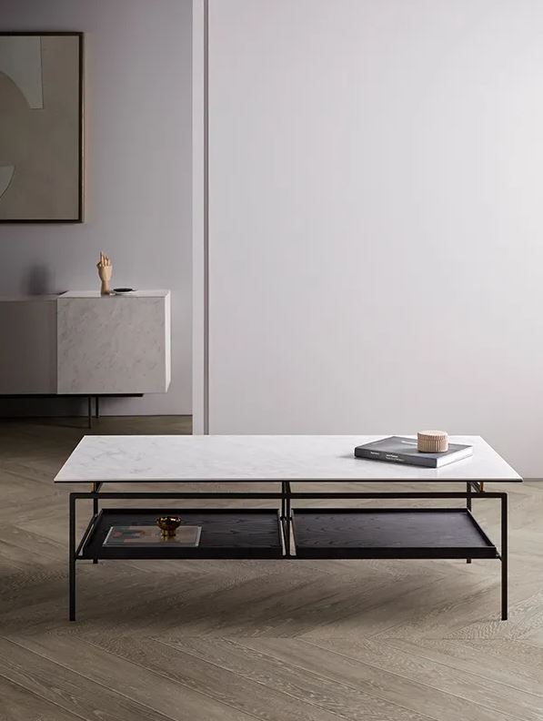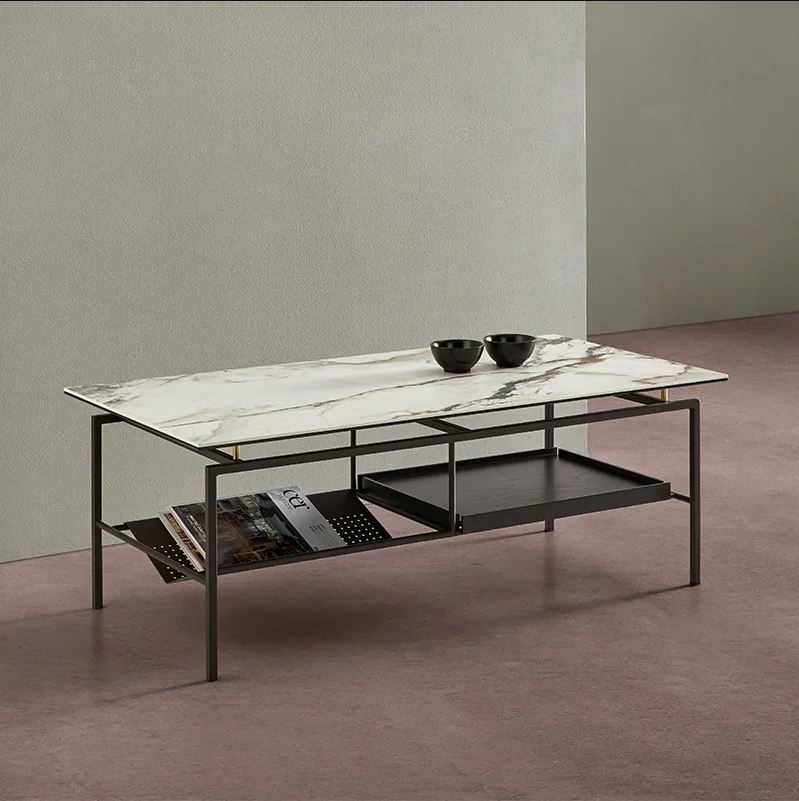 De salontafel Simone combineert elegantie met functionaliteit. Het metalen frame draagt een keramisch blad met marmerlook, wat een luxe uitstraling geeft. Dankzij de opbergruimte, zoals een tijdschriftenhouder en houten dienblad, is de tafel praktisch en stijlvol. Het open ontwerp zorgt voor een lichte en moderne uitstraling. Simone is een veelzijdige blikvanger voor elk interieur.