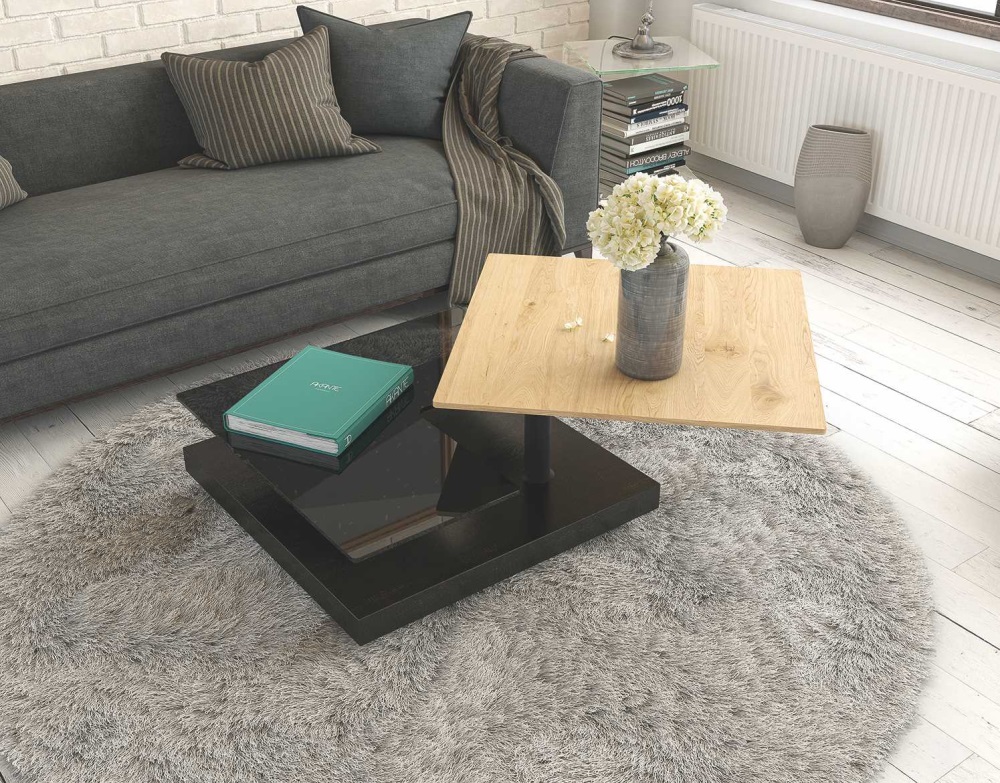 Kenmerkend voor dit model is het draaimechanisme. De bovenste plaat kan 360° draaien. Deze unieke combinatie zal een vleugje klasse in uw woonkamer brengen.