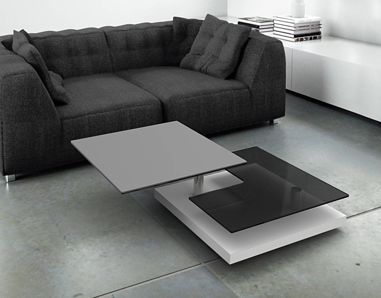 De Sophia salontafel bestaat uit drie afzonderlijke platen. Kenmerkend voor dit model is het draaimechanisme in combinatie met een keramische plaat.