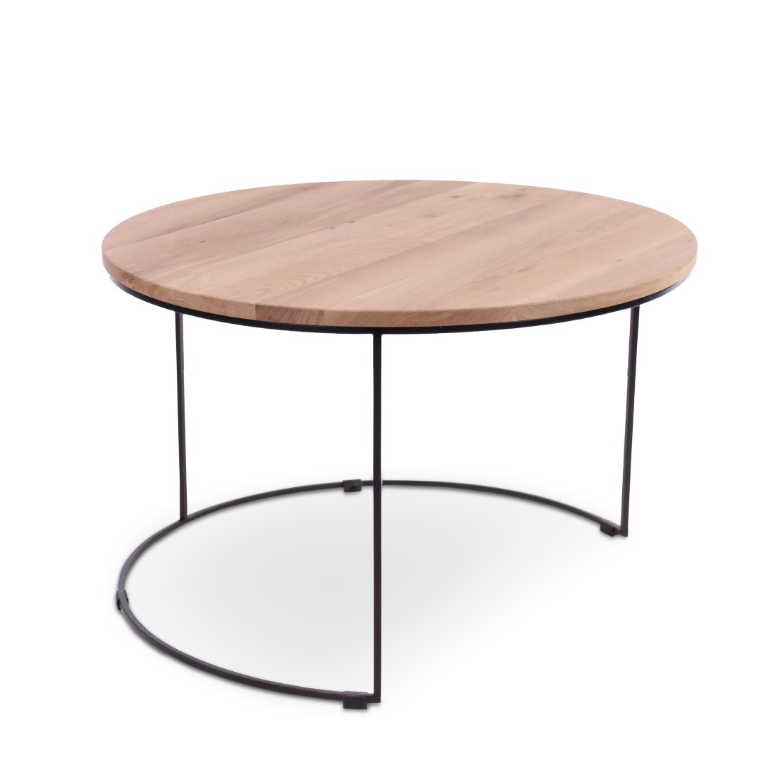 De metalen poten zijn altijd in het zwart, het eiken bovenblad is verkrijgbaar in 7 kleuren en 5 afmetingen.