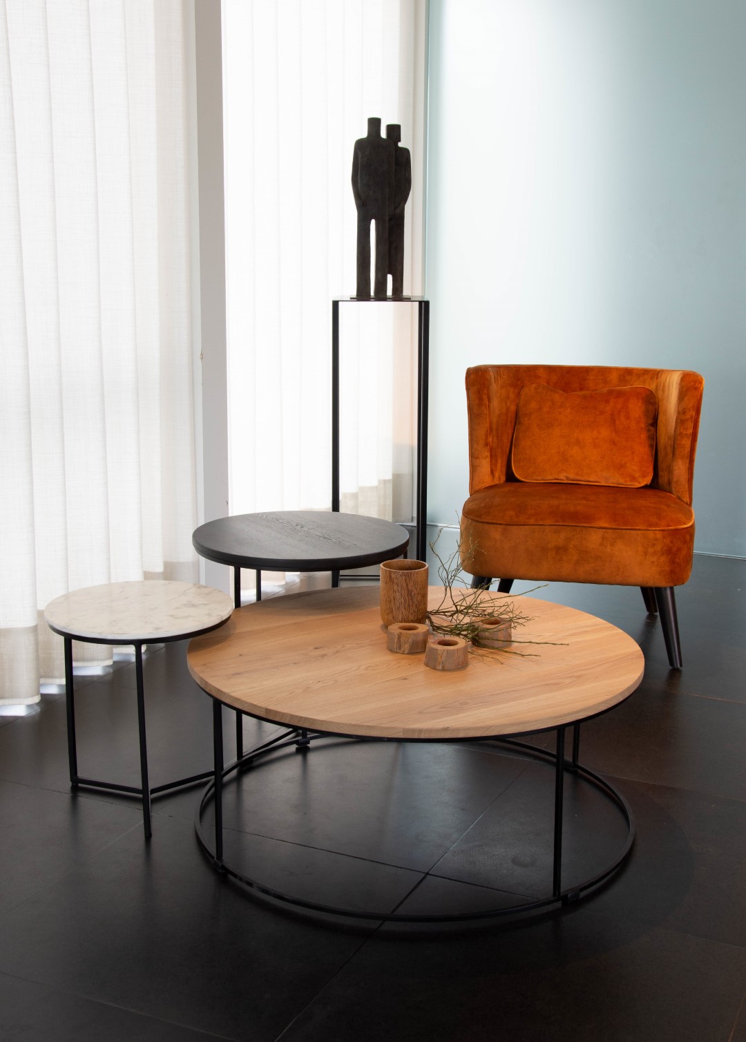 De Faro tafeltjes kunnen perfect gecombineerd worden aangezien ze verschillende hoogtes hebben.